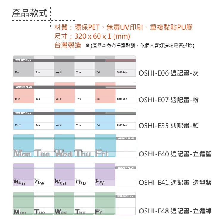 螢幕留言備忘板-週計畫 螢幕留言板 留言卡 留言夾 記事板 標示夾 便條紙便利貼 夾心備忘板 OSHI歐士立體藍|造型紫|立體綠|灰|粉|藍Memo & Sticky NotesOSHI歐士