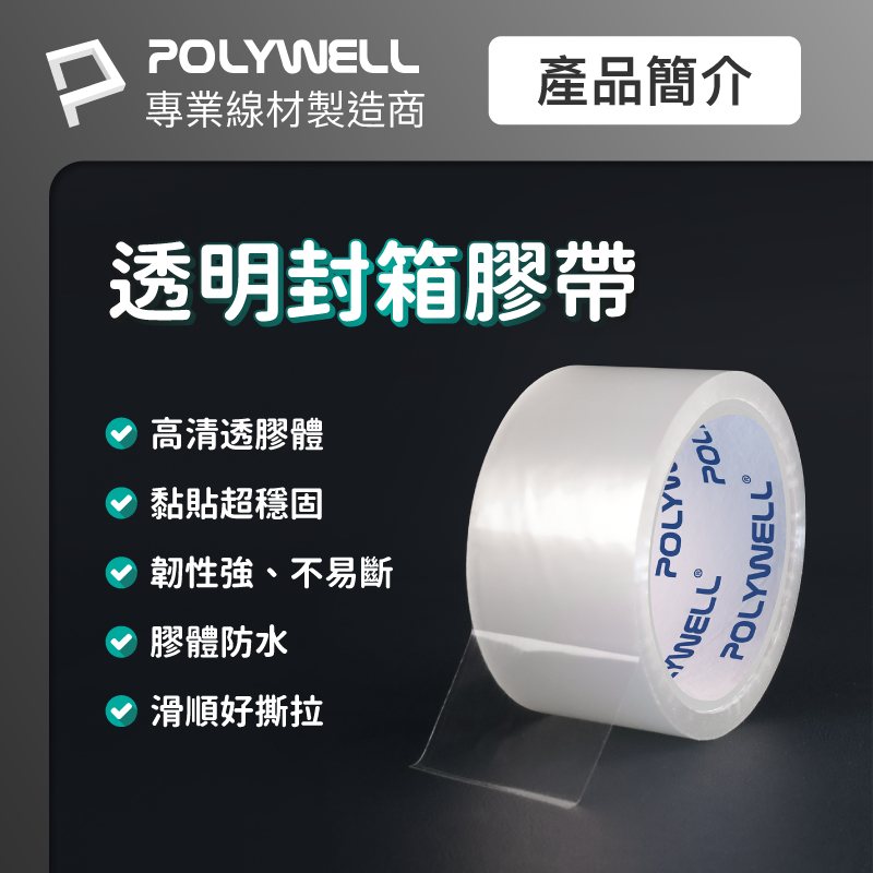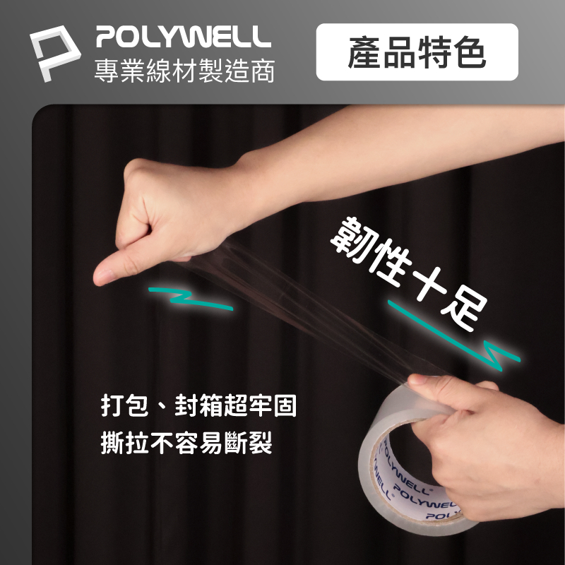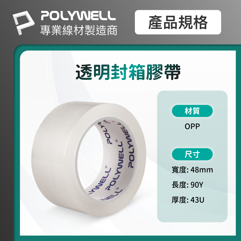 POLYWELL 透明封箱膠帶 封箱打包用 黏性強 可黏貼固定 可裁切長度 OPP透明膠帶 寶利威爾 台灣現貨寬48mm × 厚43U × 長90YStrings & TapesPOLYWELL寶利威爾官方旗艦店