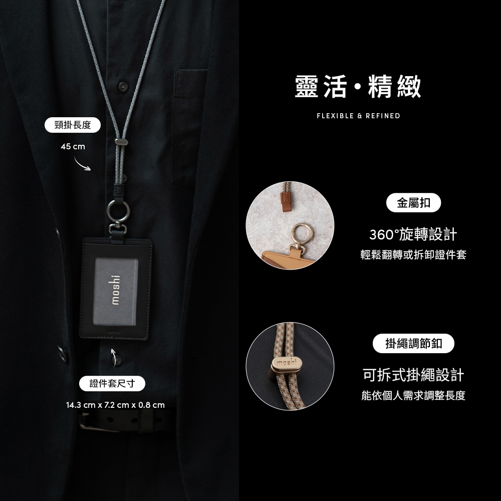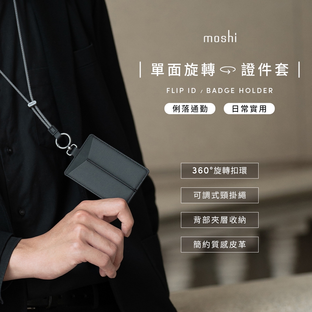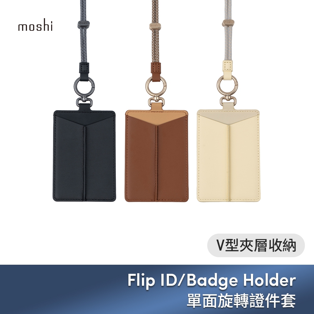 moshi Flip ID/Badge Holder 單面旋轉證件套 V型夾層收納 辦公好物 識別證 證件套午夜黑|焦糖棕|輕檸黃Lanyards & Name Tagsmoshi 官方旗艦店