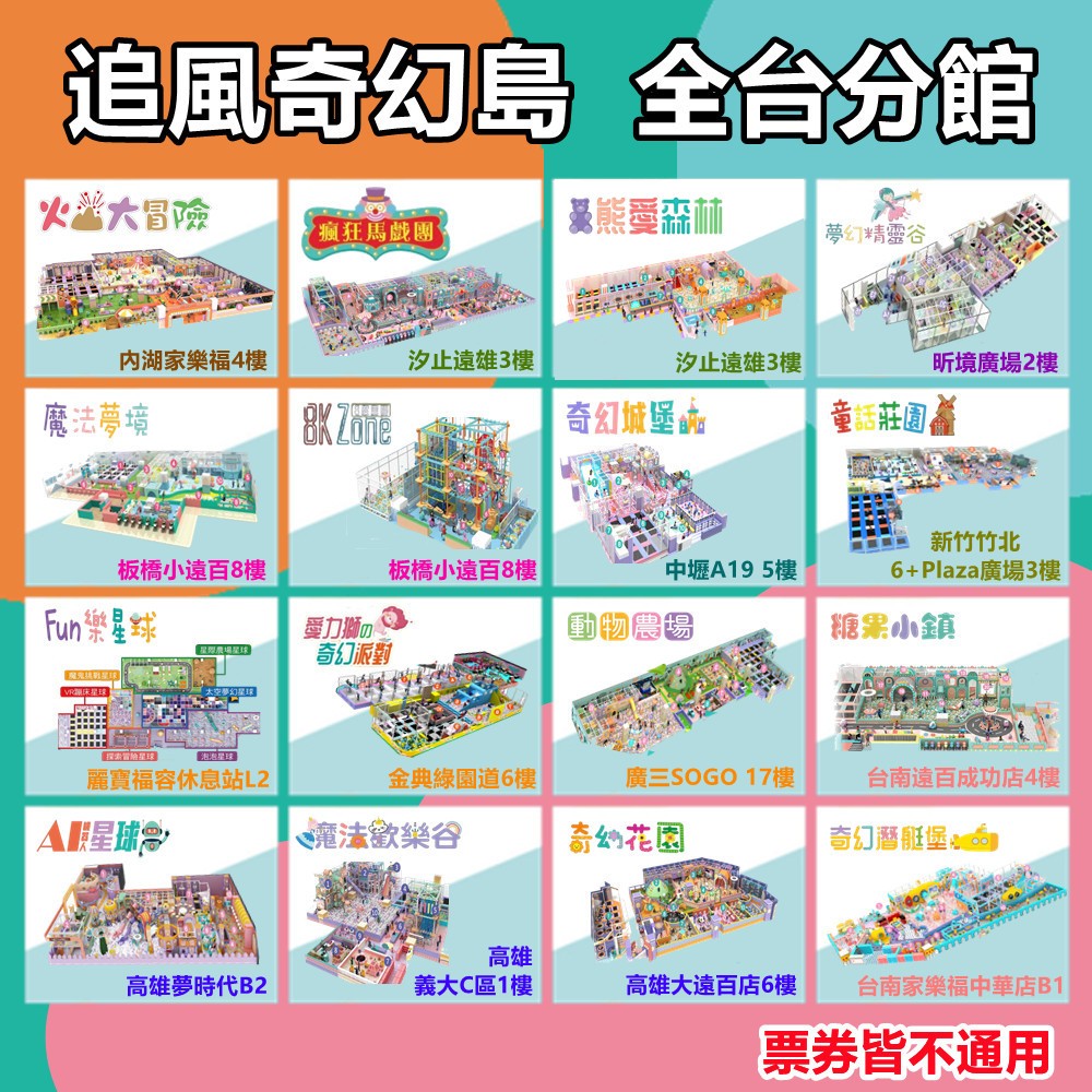 追風奇幻島集團 北/中/南各館 紙本票券【mydna】台南家樂福 奇幻潛艇堡|台中麗寶 L2 Fun樂星球|汐止遠雄3F 瘋狂馬戲團|汐止遠雄3F 熊愛森林|板橋小遠百8F 魔法夢境|板橋小遠百8F 8K ZONE|新竹竹北 童話莊園|台中綠園道 愛力獅的奇幻派對|高雄 AI機器人星球 單兒童票|林口昕境廣場2F 夢幻精靈谷|桃園環球A19 奇幻城堡|台中廣三SOGO 動物農場|台南遠百 糖果小鎮|高雄大遠百 奇幻花園|高雄義大旗艦店 魔法歡樂谷Theme Parks & AttractionsMYDNA售票-吃喝玩樂整合行銷
