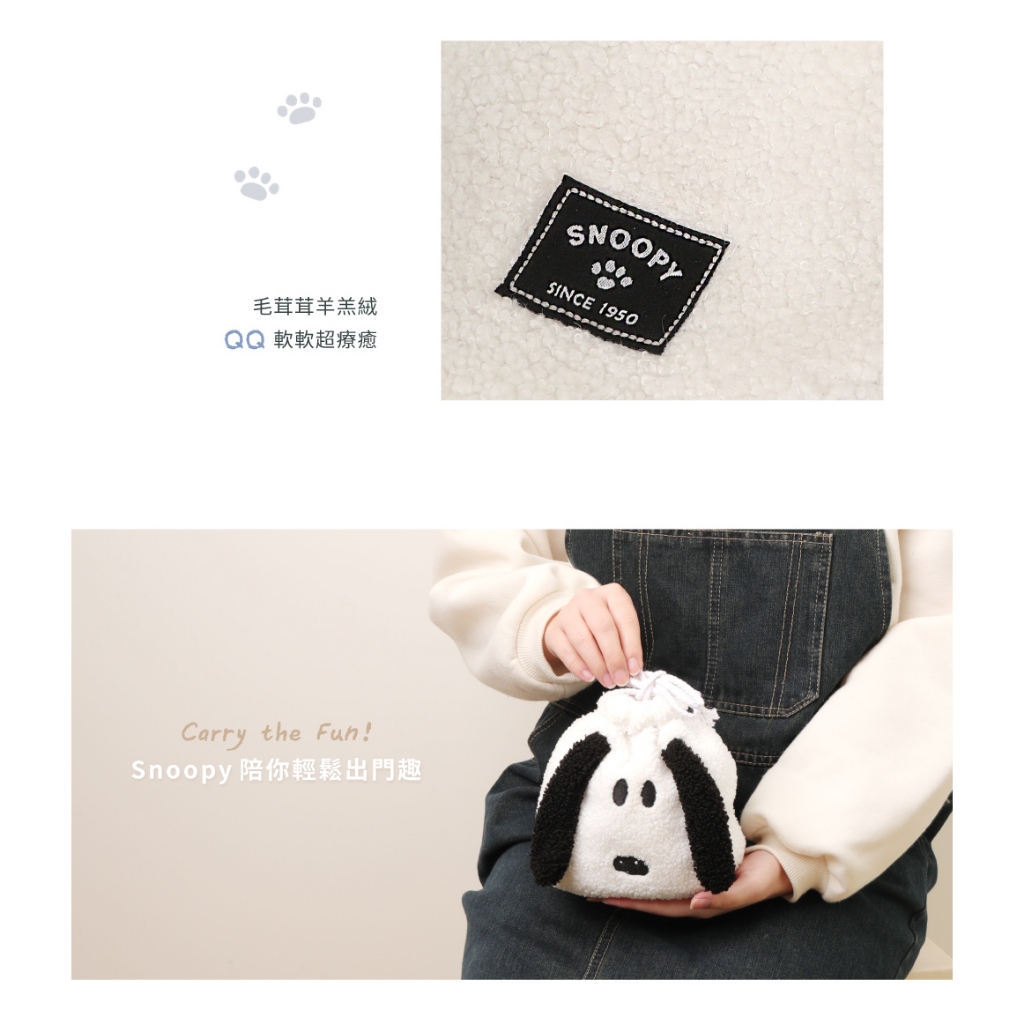 Norns 束口袋 Peanuts 史努比-收納袋 大臉 袋 袋子 可愛 卡通 造型 絨毛 史奴比 Snoopy史努比正臉Drawstring BagsNorns
