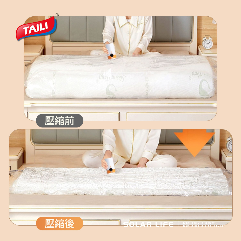 TAILI 太力 乳膠床墊真空壓縮袋 海綿床墊收納袋 露營床壓縮袋 搬家宿舍 床墊羽絨被 棉被抽氣真空袋太力無線電動抽氣筒|立體型 180x85x30cm|平面型 220x100cm|手動抽氣筒|有線插電抽氣筒Drawstring BagsSolar Life 索樂生活 | Keith鎧斯鈦台灣總代理