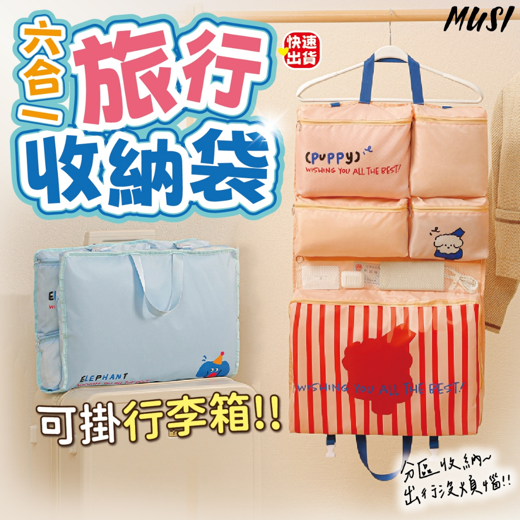 [可懸掛可掛行李箱]行李收納袋 旅行收納袋 旅行收納包 6合1設計 可下水洗滌 旅行收納 行李箱收納 行李收納六合一旅行收納袋-紅條紋 現貨隔天發|六合一旅行收納袋-藍格子 現貨隔天發Travel OrganizersMUSI 口罩&包包帽子 專賣