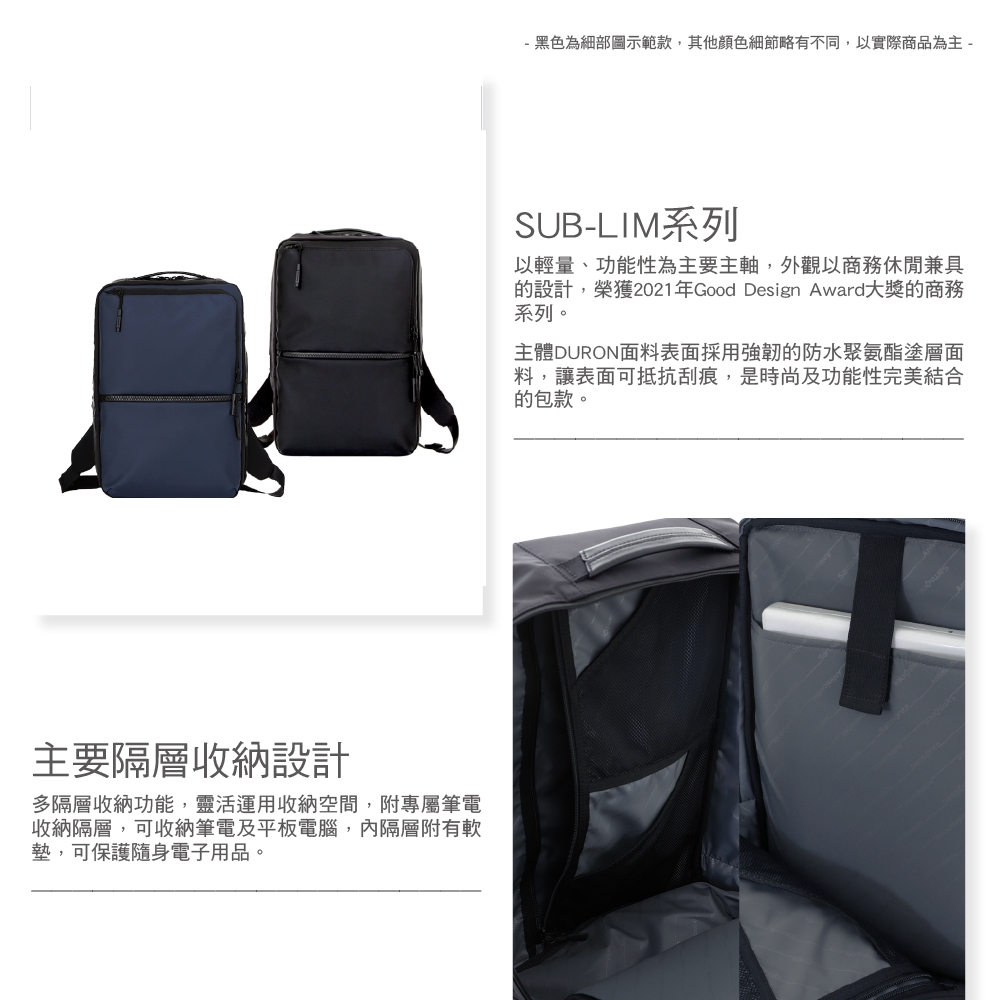 Samsonite 新秀麗 筆電後背包/電腦包/雙肩包/公事包15.5吋 SUB-LIM 商務防水防刮面料背提兩用黑|海軍藍Duffel & Weekender BagsSamsonite 新秀麗官方旗艦店