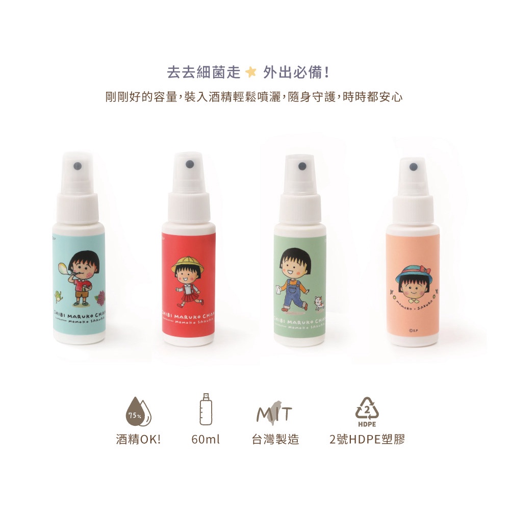 櫻桃小丸子噴霧空瓶60ml- Norns 小丸子 櫻桃小丸子 正版授權 台灣製造HDPE 2號瓶罐 可裝酒精 分裝瓶隨機出貨1個Travel Size Bottles & ContainersNorns