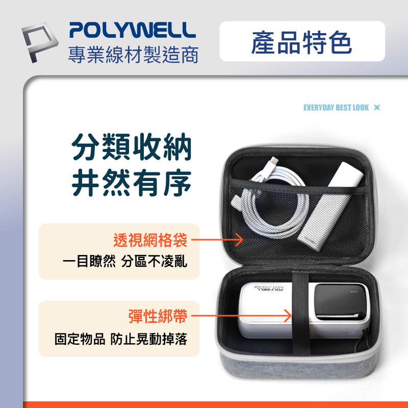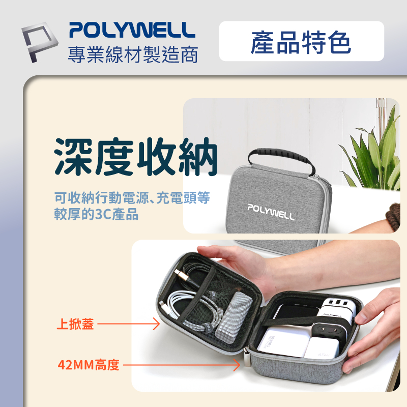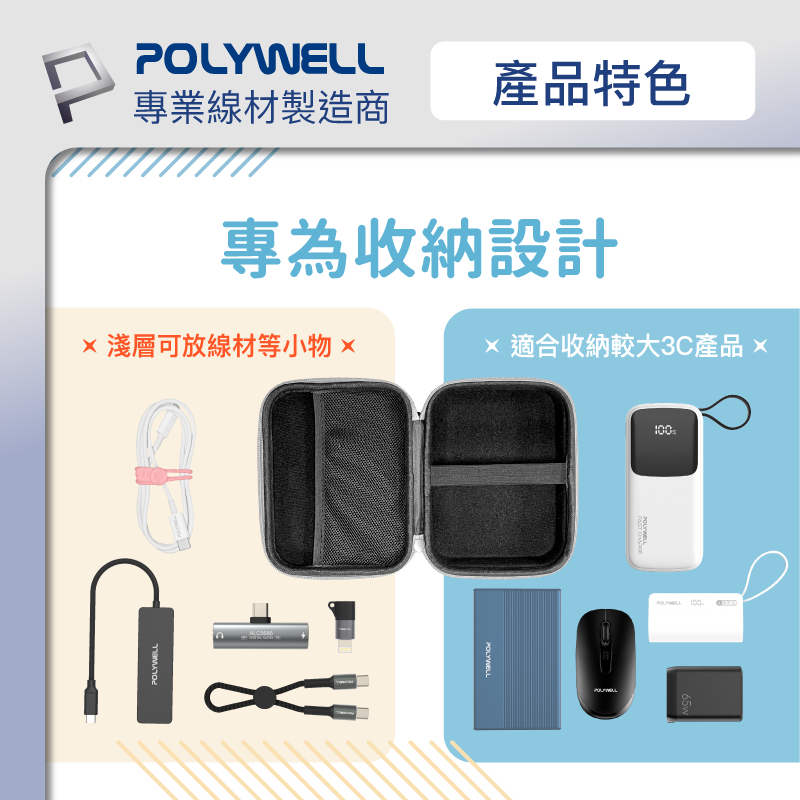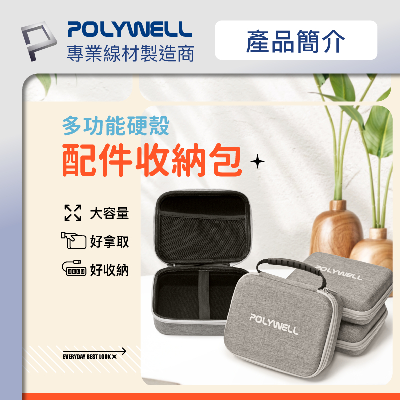 POLYWELL 3C硬殼配件包 (大號) 上掀式帶提把 旅行收納包 適合上班 出差 旅遊 隨身收納 寶利威爾 台灣現貨3C硬殼配件包 (大號)Travel OrganizersPOLYWELL寶利威爾官方旗艦店