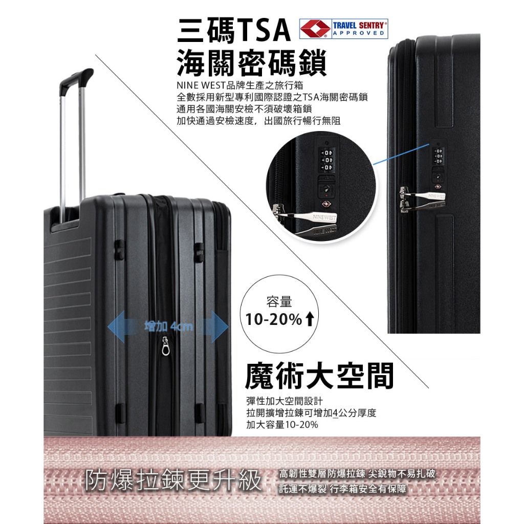 【NINE WEST】情人節禮物首選 前開可加大行李箱 登機箱 20吋 24吋 28吋 經典防爆旅行箱 (多款任選)直條-鐵灰色,20吋|直條-鐵灰色,28吋|直條-鐵灰色,24吋|直條-黑色,20吋|直條-黑色,24吋|直條-黑色,28吋|直條-藍色,28吋|直條-米色,20吋|直條-松石綠,20吋|直條-粉色,28吋|直條-薄荷綠,20吋|直條-粉色,20吋|直條-粉色,24吋|直條-藍色,20吋|直條-藍色,24吋|直條-松石綠,24吋|直條-松石綠,28吋|直條-薄荷綠,24吋|直條-薄荷綠,28吋|直條-米色,24吋|直條-米色,28吋|橫條-黑色,20吋|橫條-黑色,24吋|橫條-黑色,28吋|橫條-鐵灰色,20吋|橫條-鐵灰色,24吋|橫條-鐵灰色,28吋|橫條-酒紅,20吋|橫條-酒紅,24吋|橫條-酒紅,28吋|橫條-薄荷綠,20吋|橫條-薄荷綠,24吋|橫條-薄荷綠,28吋|橫條-松石綠,20吋|橫條-松石綠,24吋|橫條-松石綠,28吋NINE WEST│官方旗艦店