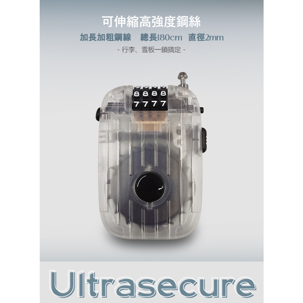 ULLR 台灣製造 180CM伸縮密碼鎖 防盜密碼鎖 鋼繩鎖 鋼絲鎖 攜帶式 雪板鎖 行李鎖 嬰兒推車鎖 強化鋼繩 耐用黑色|透明Luggage LocksPrince Outdoor 王子登山滑雪