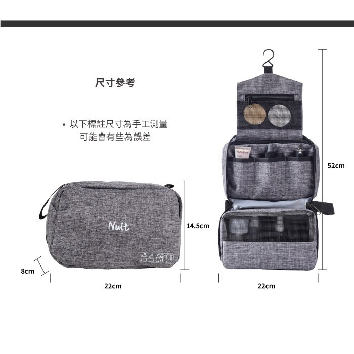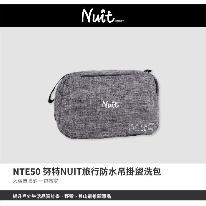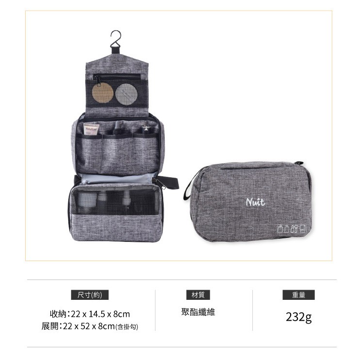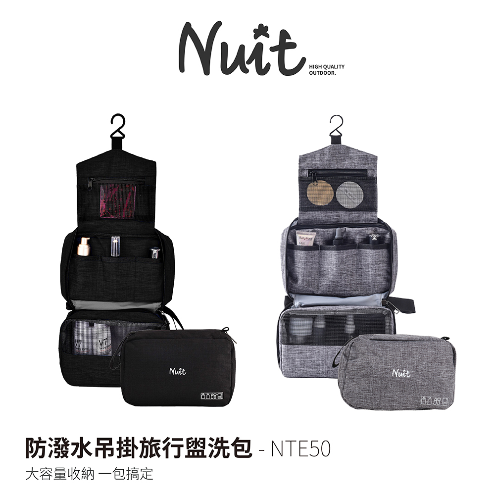 【努特NUIT】 NTE50 防水吊掛旅行盥洗包 收納 化妝包 掛勾漱洗包 輕便旅行 防水有蓋防潑水黑|灰Travel OrganizersNuit努特戶外用品 官方旗艦店 (總代理:探險家戶外露營用品)