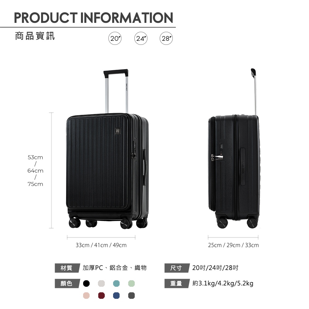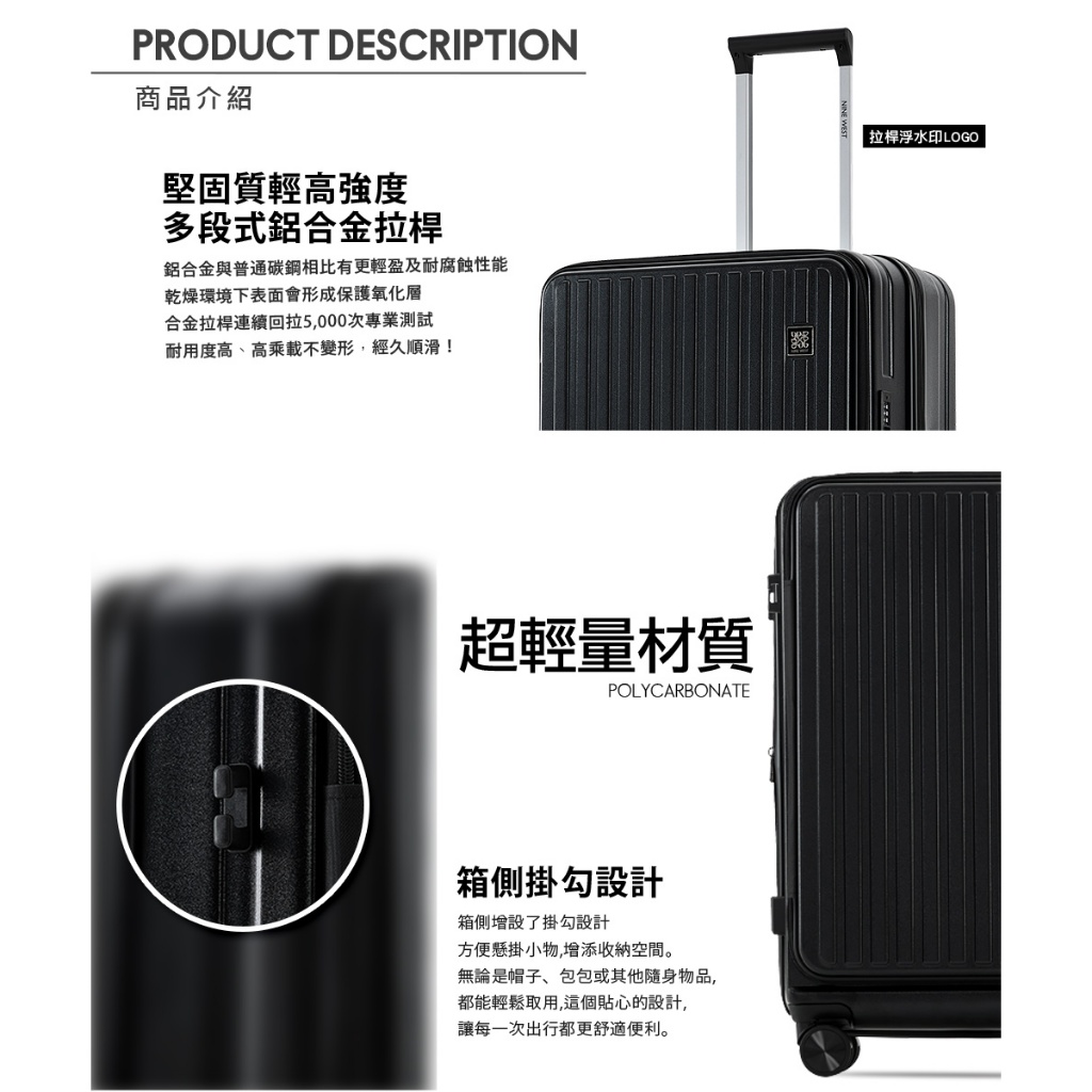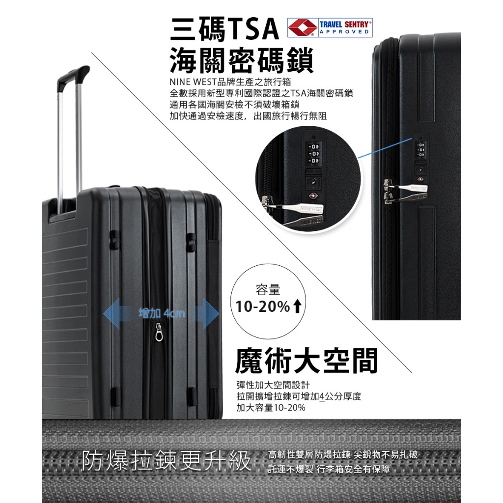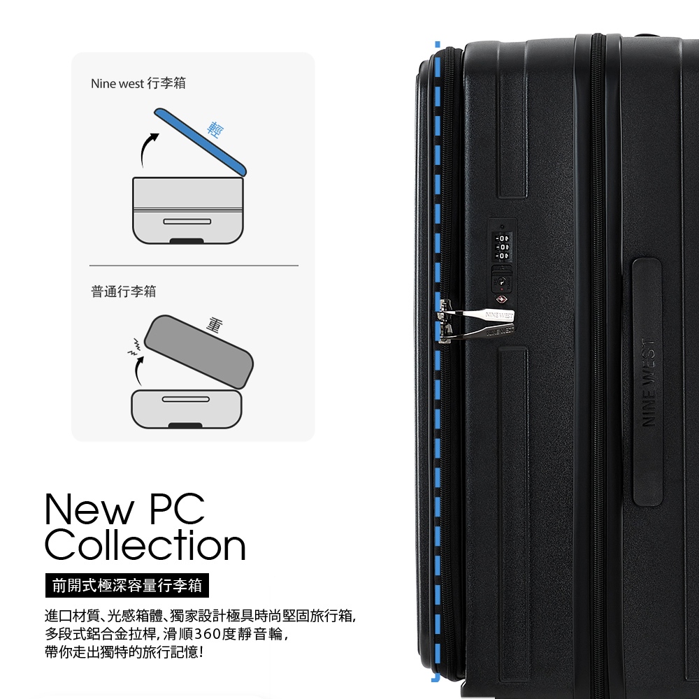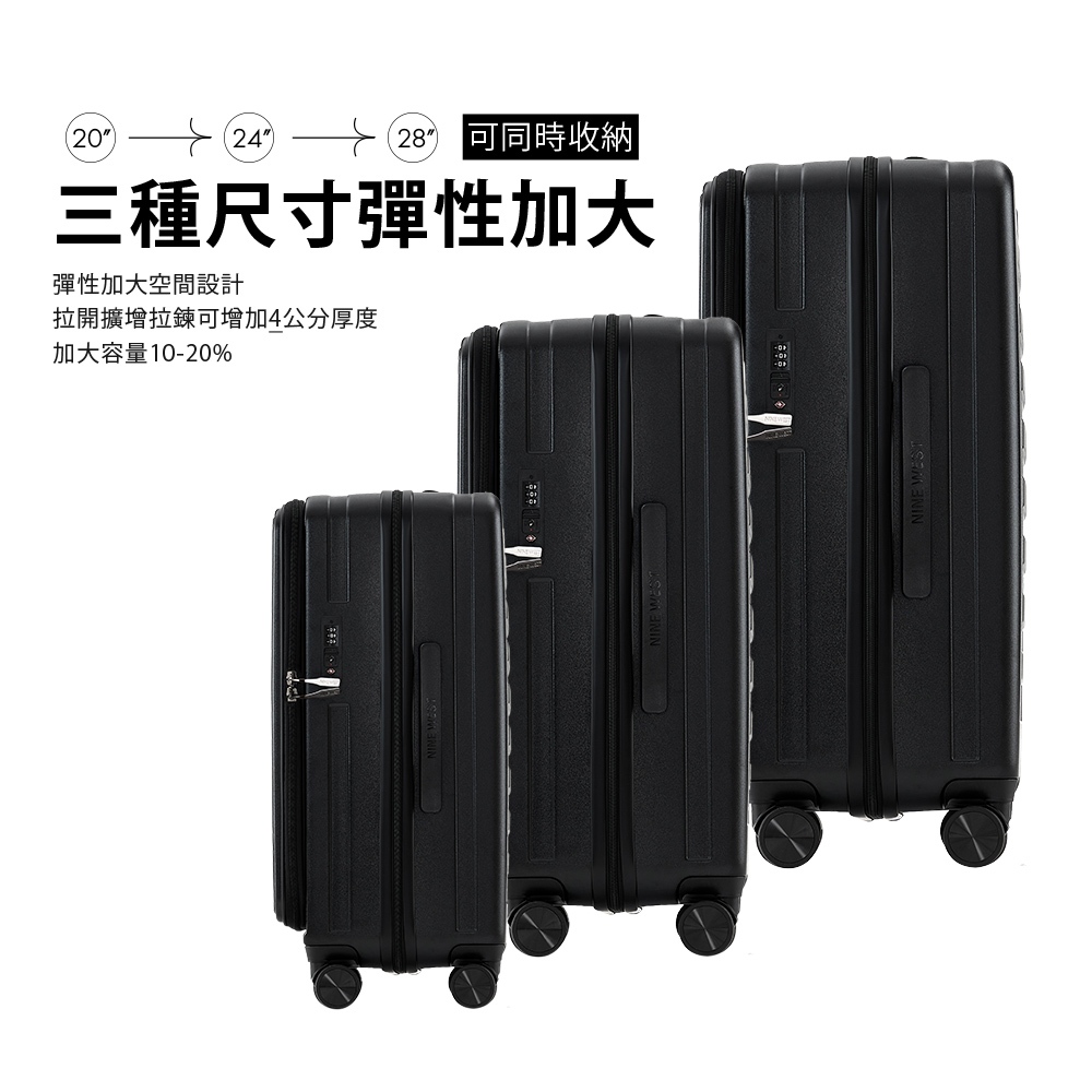 【NINE WEST】BYRON經典直條 20/24/28吋前開式擴充/防爆旅行箱/行李箱/登機箱-藍色-NW3126820吋|24吋|28吋NINE WEST│官方旗艦店
