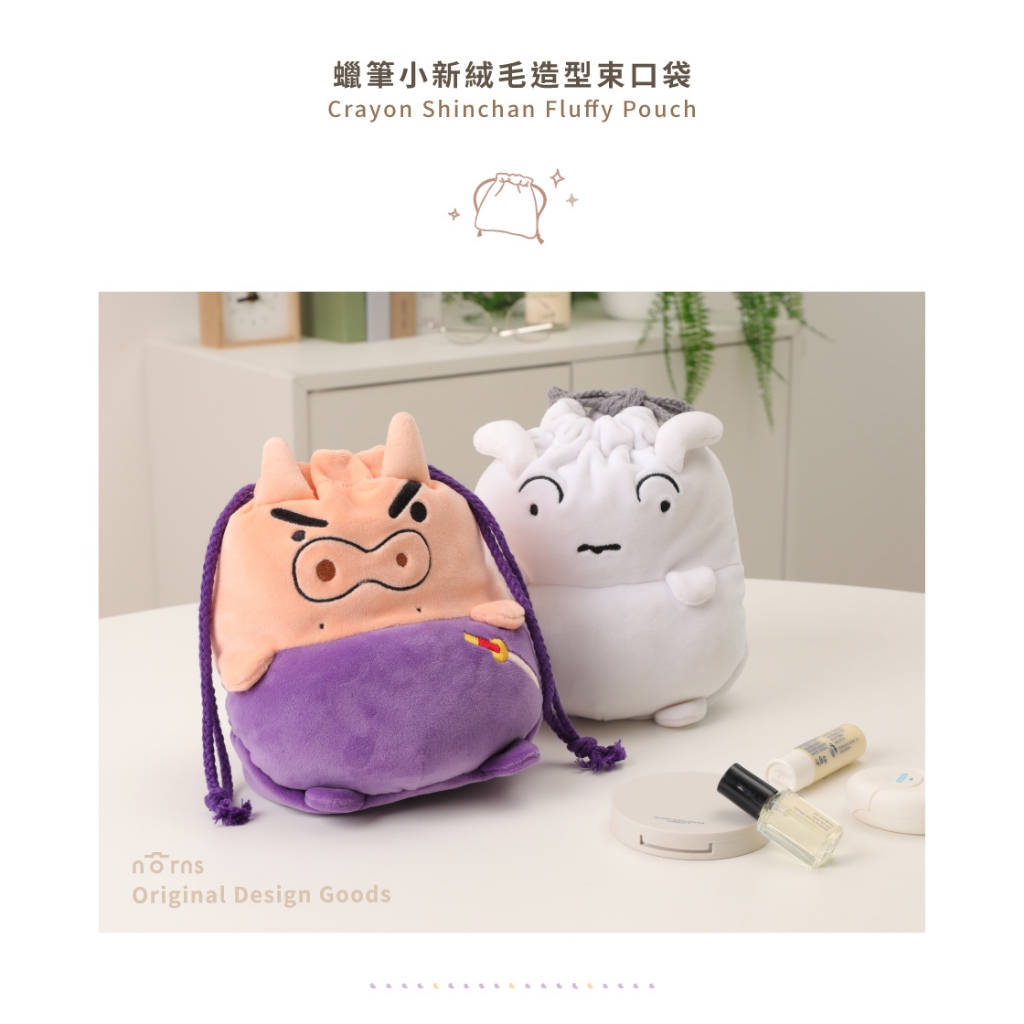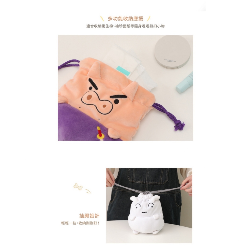 Norns 束口袋 蠟筆小新-收納袋 身體 肥 袋 袋子 可愛 卡通 造型 絨毛 肥嘟嘟 左衛門 小白 小新全身小白|肥嘟嘟左衛門Drawstring BagsNorns