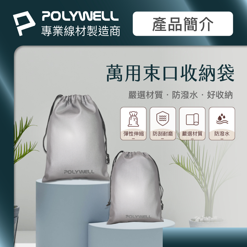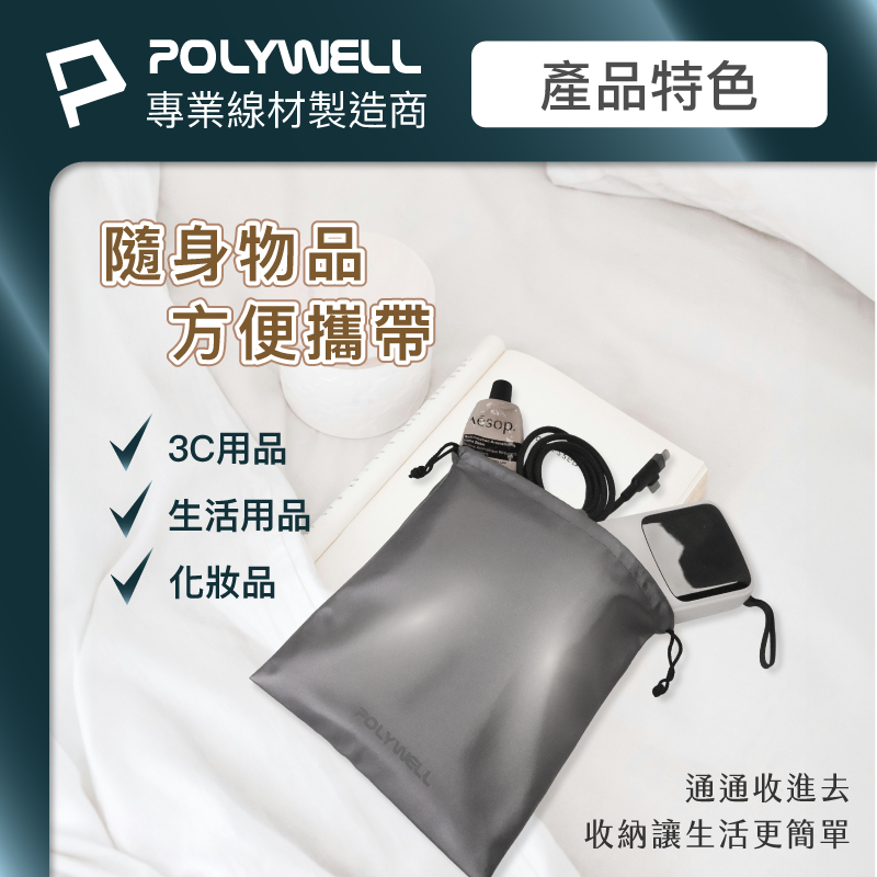 POLYWELL 隨身萬用束口袋 3C化妝品小物收納 適合上班 騎車 出差 外出旅遊 寶利威爾 台灣現貨