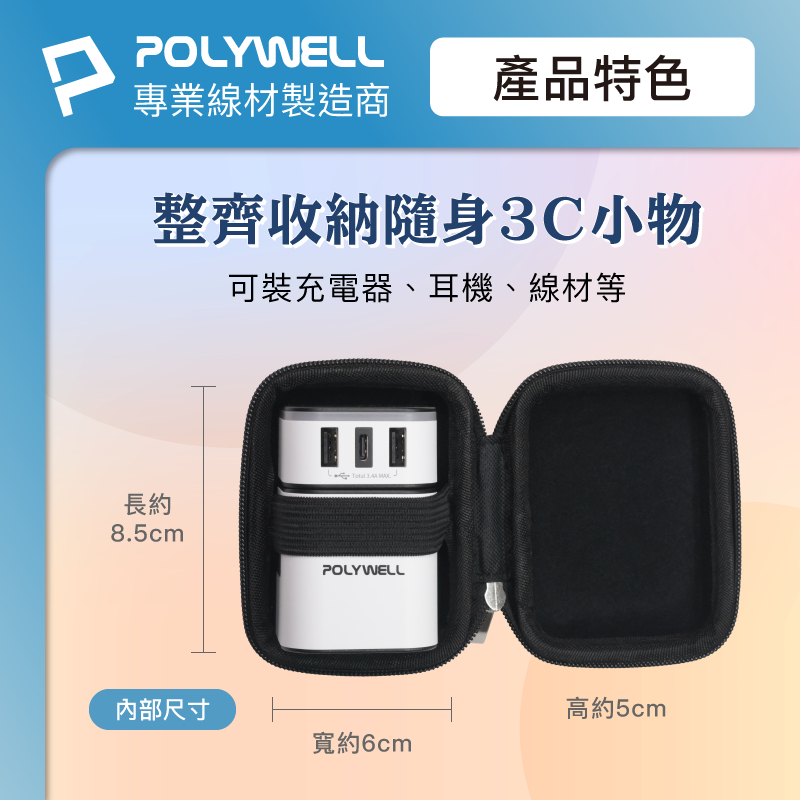 POLYWELL 硬殼旅充收納包 (迷你) 多國旅充 充電頭收納 適合上班 出差 旅遊 隨身小物收納 寶利威爾 台灣現貨硬殼旅充收納包 (迷你)Travel OrganizersPOLYWELL寶利威爾官方旗艦店