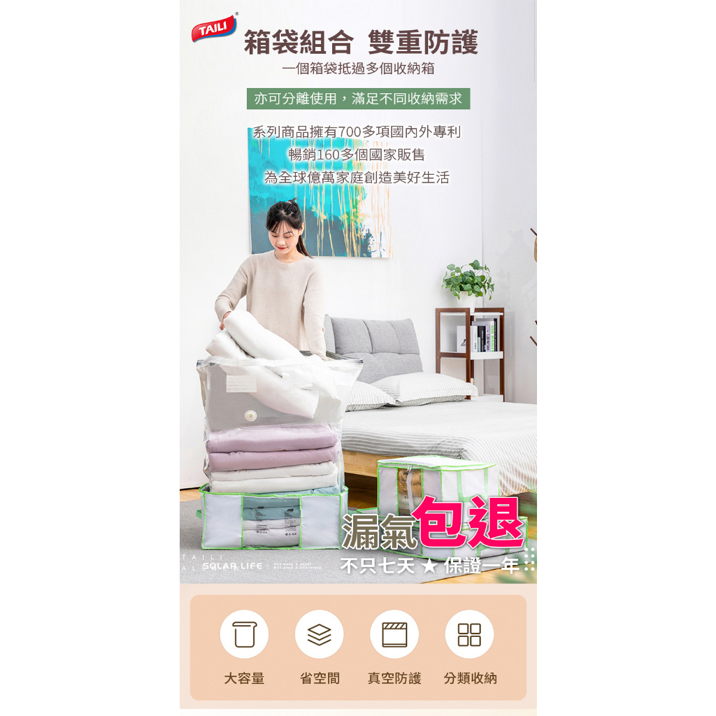 太力 免抽氣真空衣服衣物收納箱袋 可拆卸重覆使用 衣服收納箱 棉被壓縮袋 真空收納箱 手壓真空袋 換季外套 收納箱 箱袋有線插電抽氣筒|S 40x42x25cm|M 65x50x15.5cm|L 65x50x27cm|太力電動抽氣筒Foldable BagsSolar Life 索樂生活 | Keith鎧斯鈦台灣總代理
