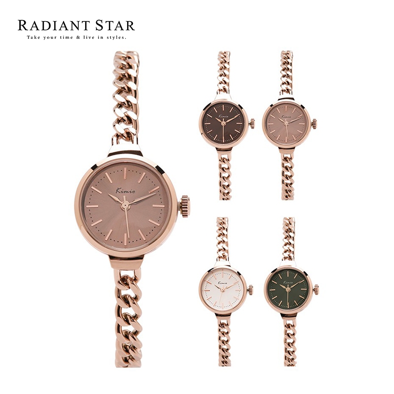 KIMIO摩登女伶輕奢小圓金屬手鍊手錶【WKI6510】璀璨之星白面玫金帶|藕粉面玫金帶|深棕面玫金帶|綠面玫金帶Radiant Star 璀璨之星 官方旗艦店