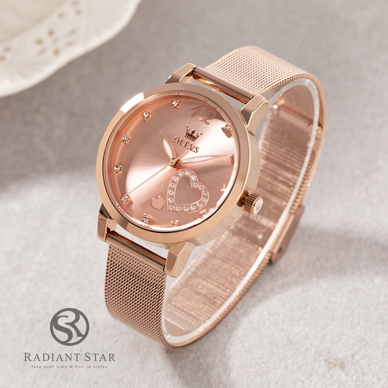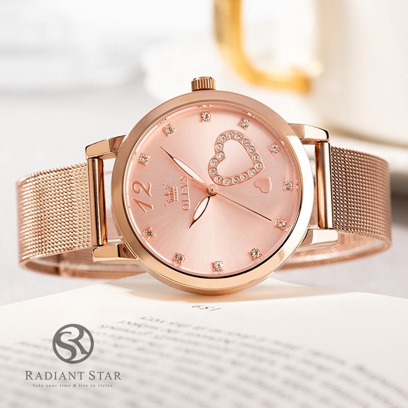 OLEVS柔情鑽影經典婉約愛心米蘭鍊帶手錶【WOL5189】璀璨之星白面玫金帶|粉面玫金帶Radiant Star 璀璨之星 官方旗艦店