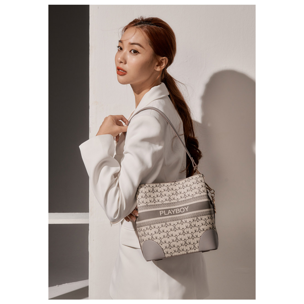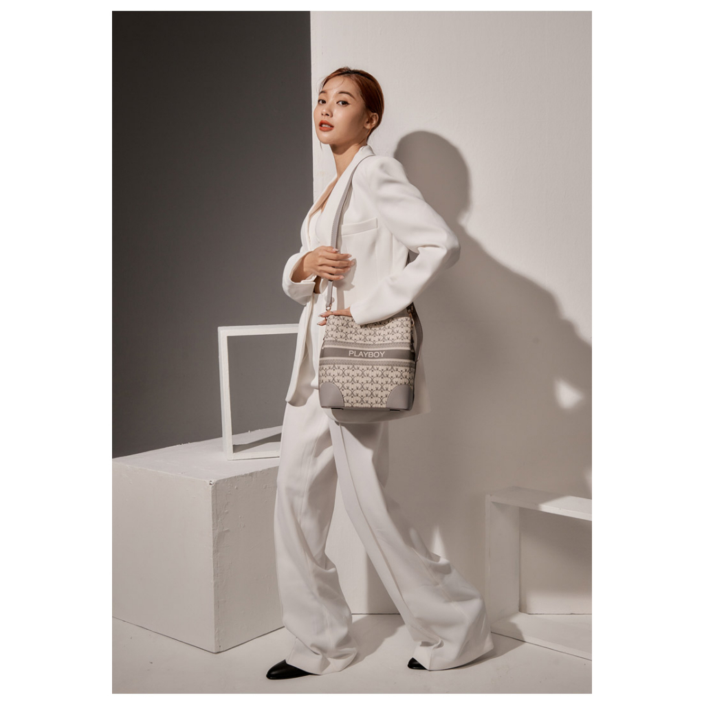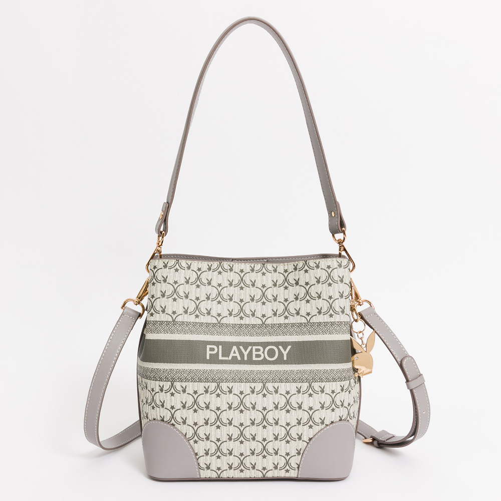 PLAYBOY – 水桶包附長短背帶 Miss bunny系列 – 灰色PLAYBOY – 水桶包附長短背帶 Miss bunny系列 – 灰色PLAYBOY包包 官方旗艦館
