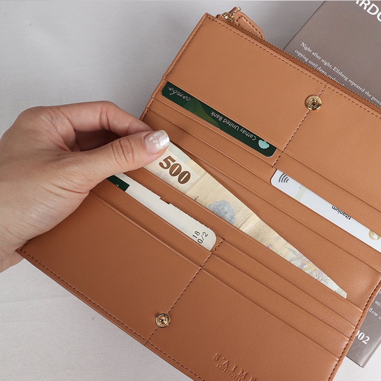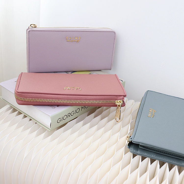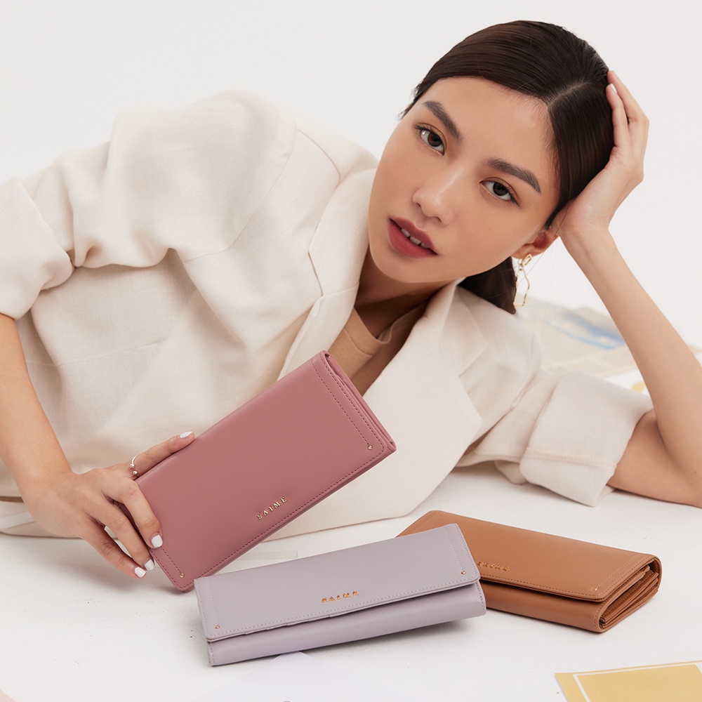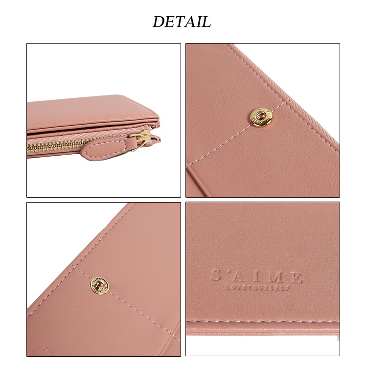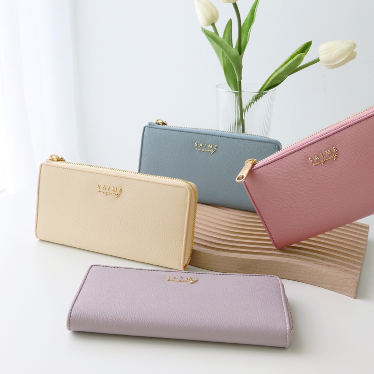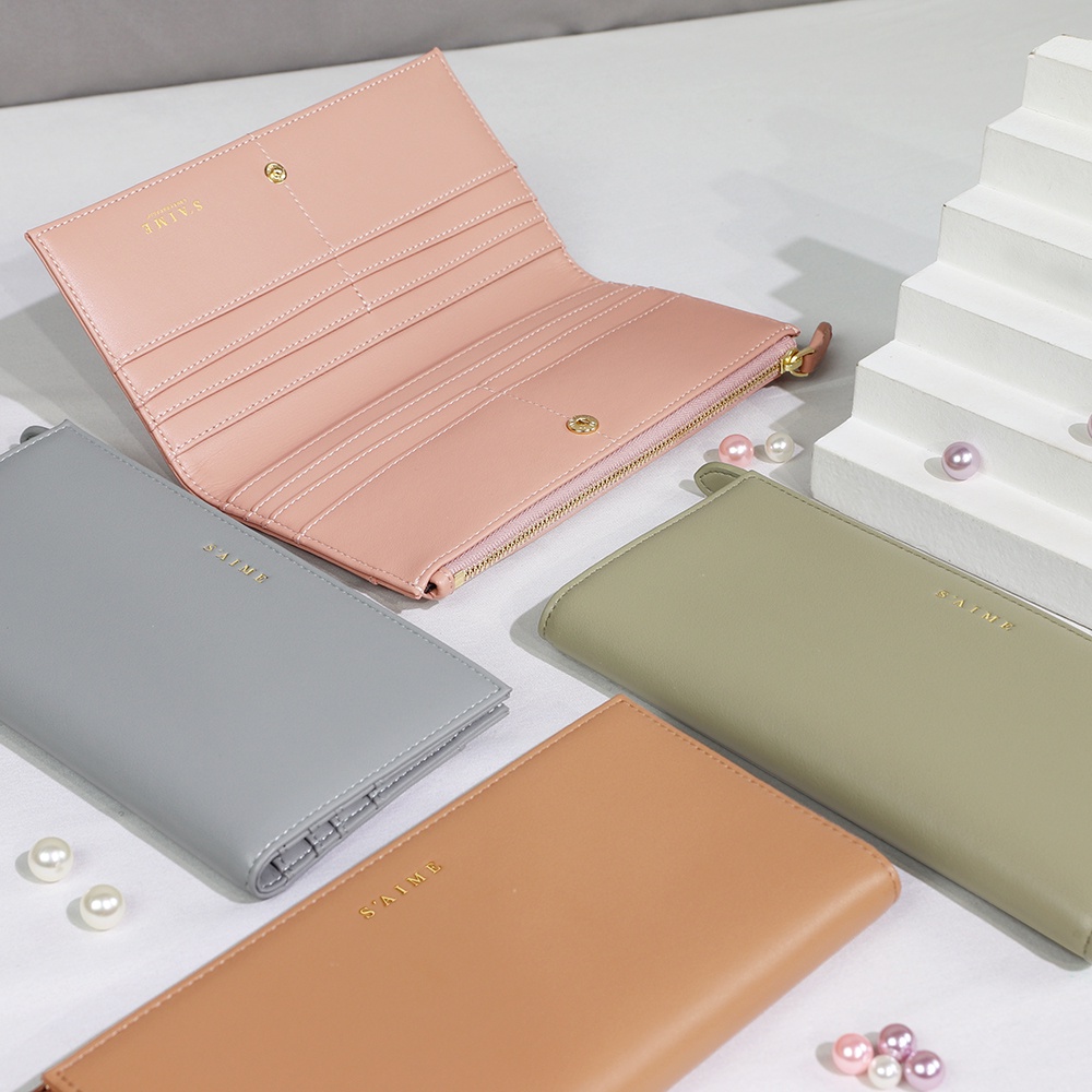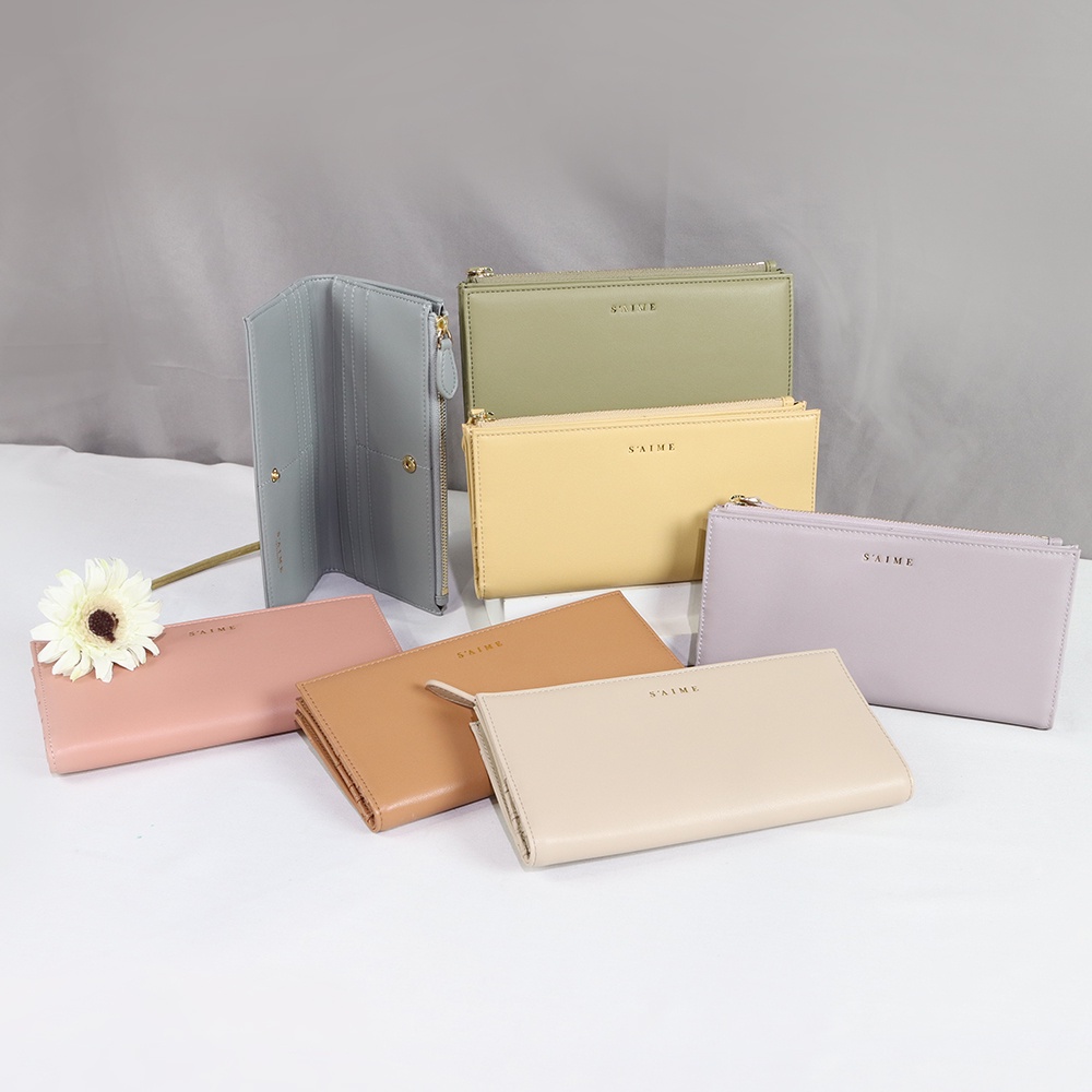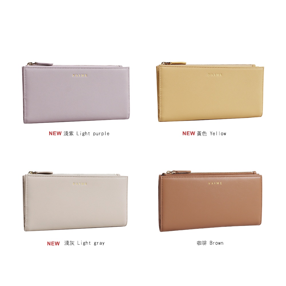 S’AIME 真皮素面輕薄對折長夾粉駝|藍灰|黑色|咖啡|綠色|淺紫|黃色|淺灰Long WalletsS’AIME 東京企劃官方旗艦店
