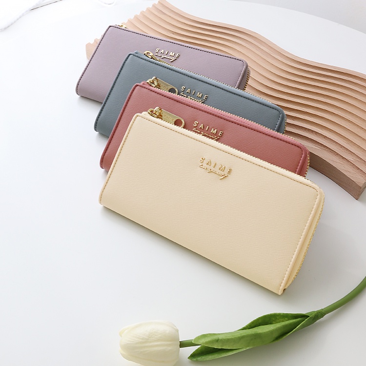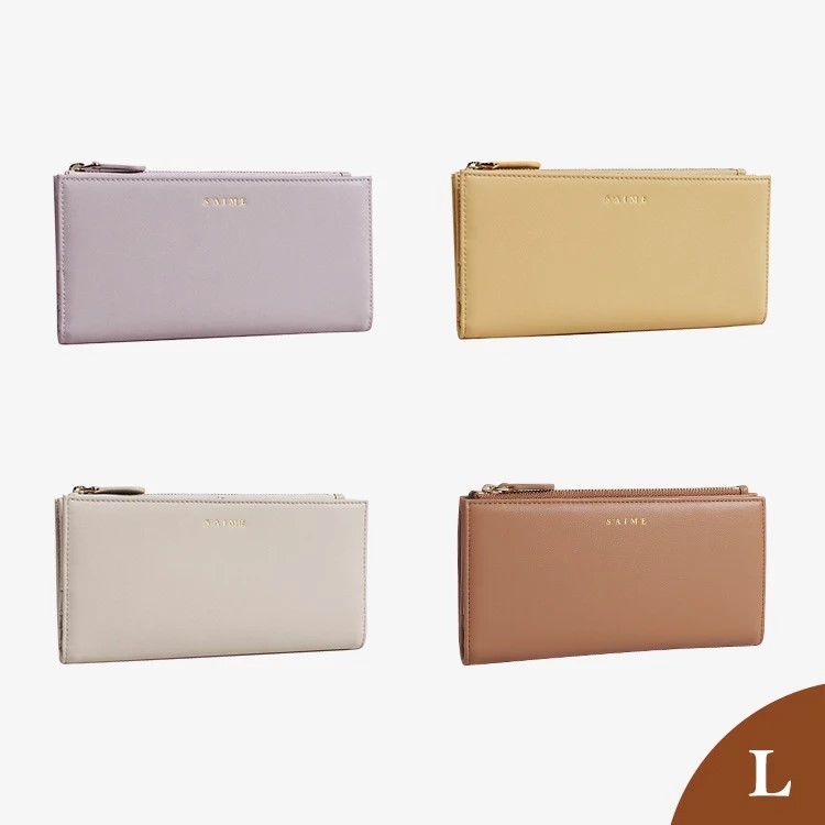 S’AIME 真皮防刮L型拉鍊長夾黑色|杏色|藍灰|淺紫|粉駝Long WalletsS’AIME 東京企劃官方旗艦店