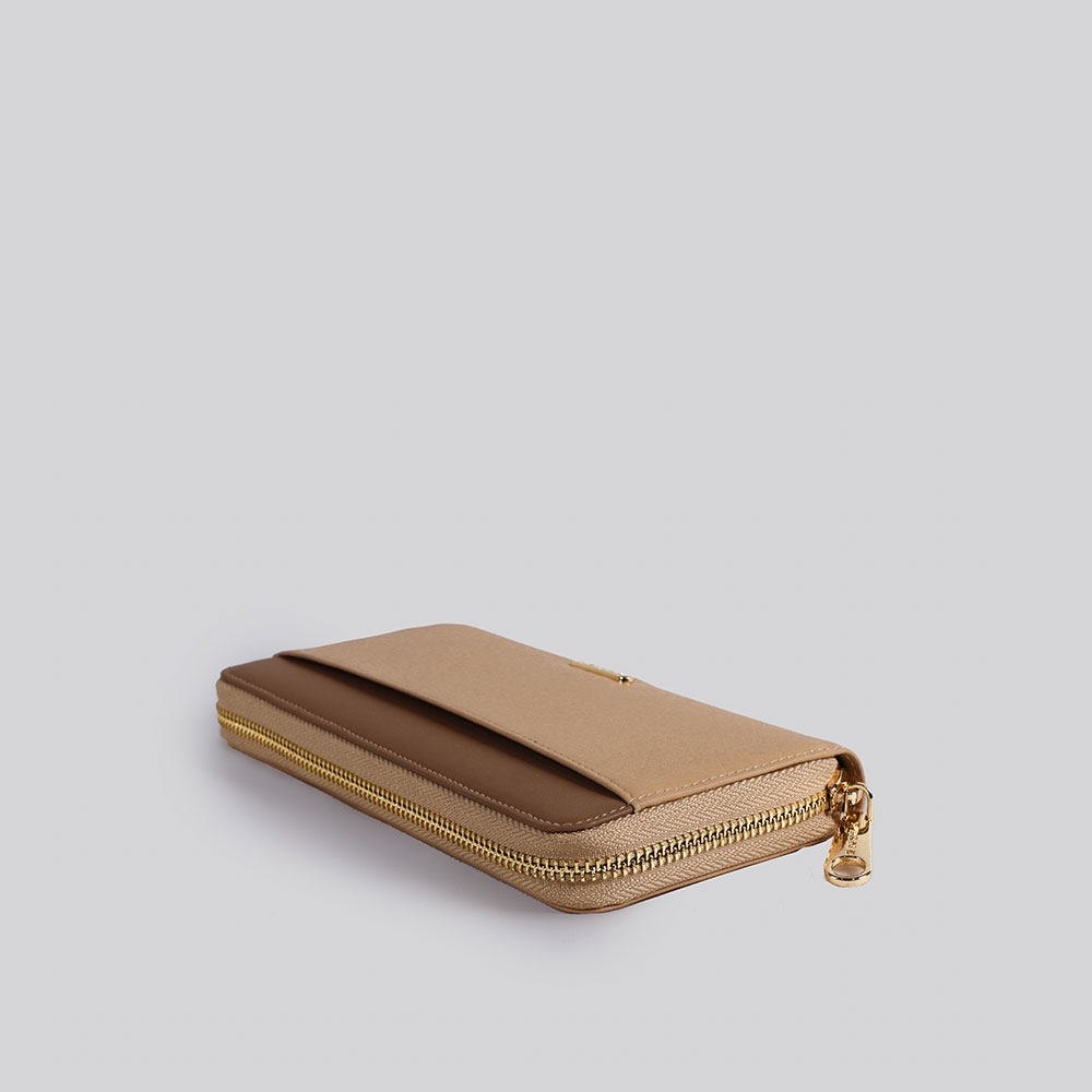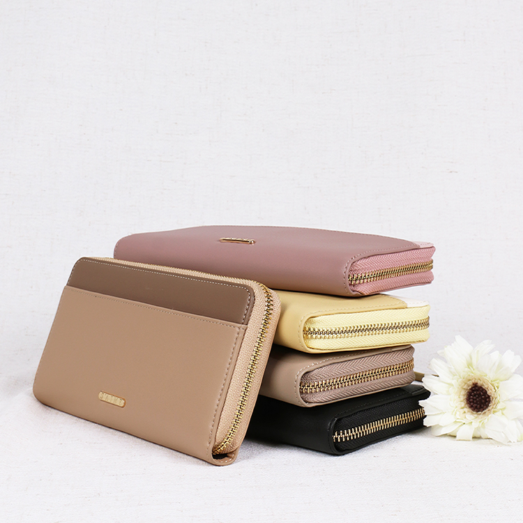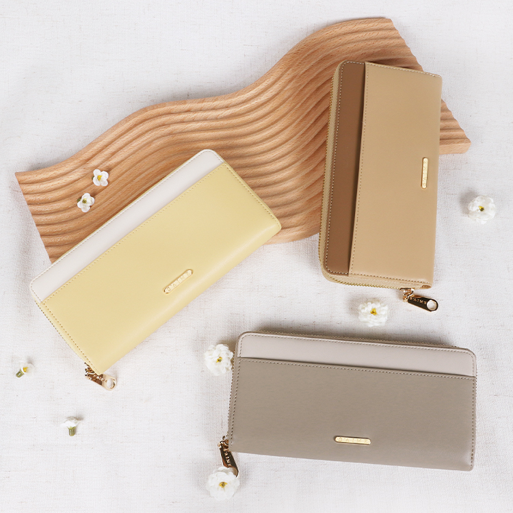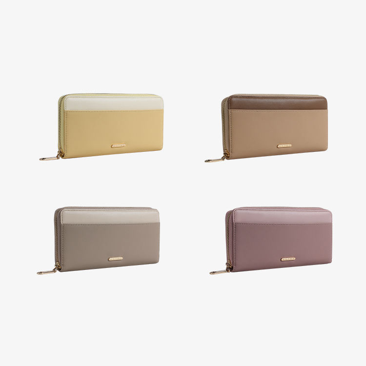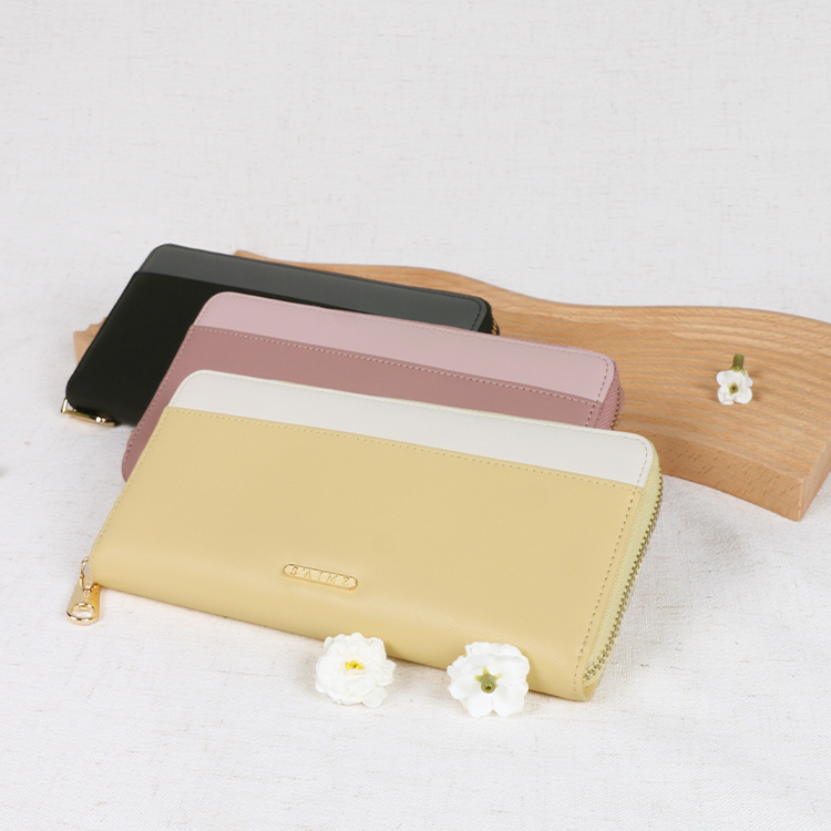 S’AIME 真皮撞色拉鍊長夾黃色|煙燻粉|黑色|灰色|杏色Long WalletsS’AIME 東京企劃官方旗艦店