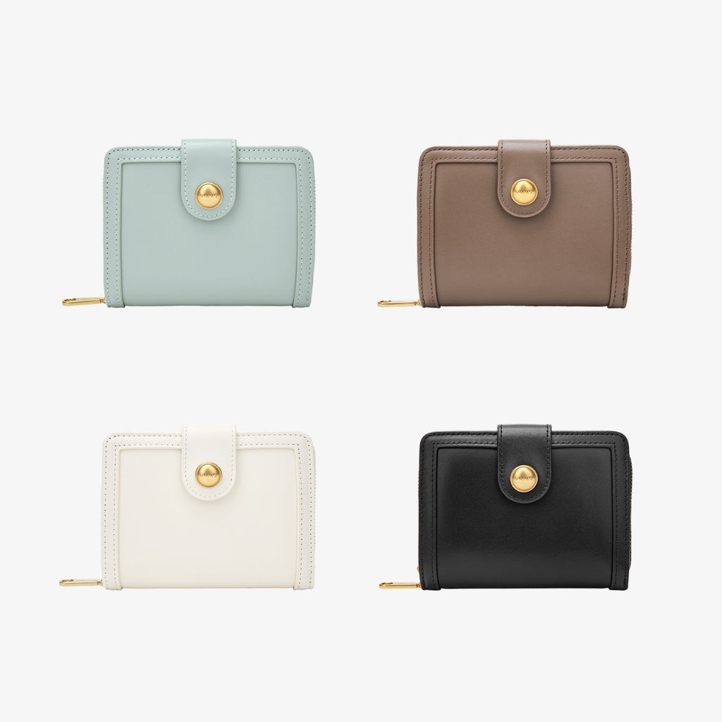 S’AIME 頭層真皮RFID防盜圓釦短夾黑色|咖啡|淺灰綠|白色Bifold & Trifold WalletsS’AIME 東京企劃官方旗艦店