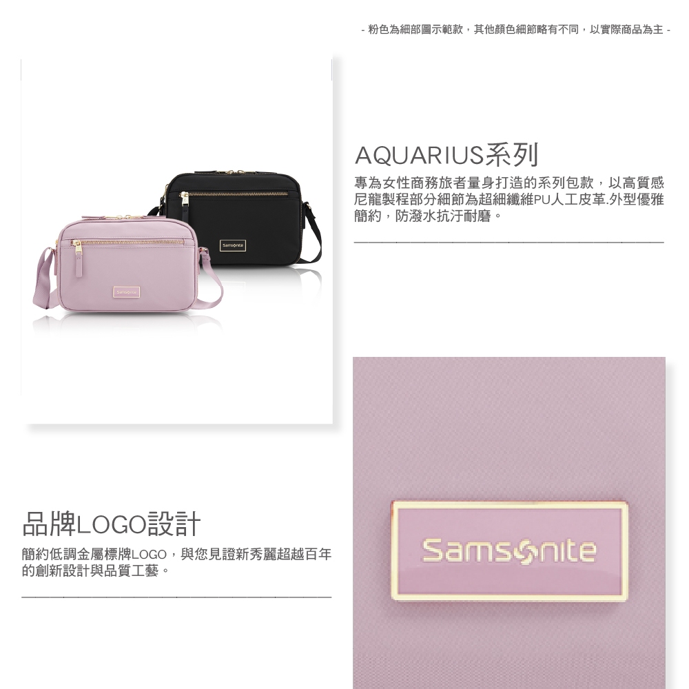 Samsonite 新秀麗 斜肩包/斜背包/女包/側背包/肩背包/單肩包/小包 AQUARIUS 輕量商務時尚多層黑色|粉色Samsonite 新秀麗官方旗艦店