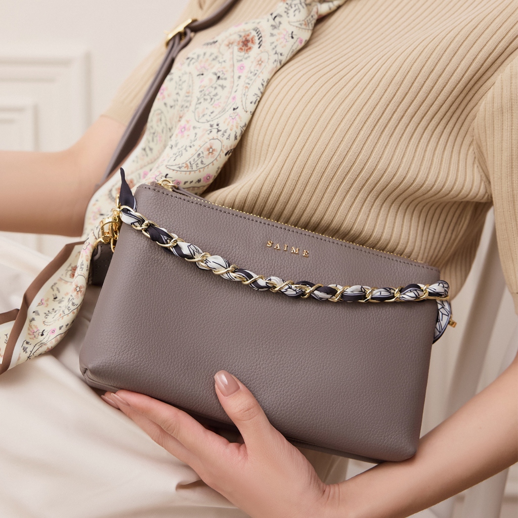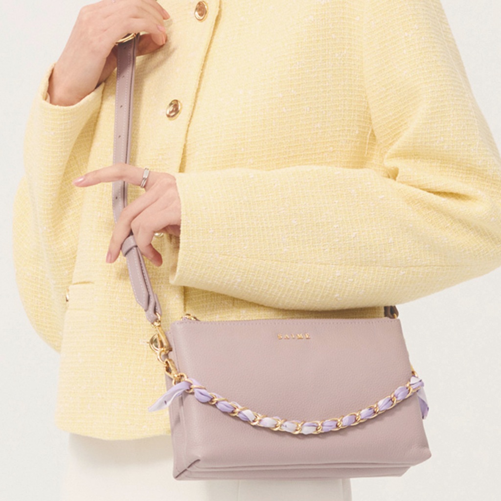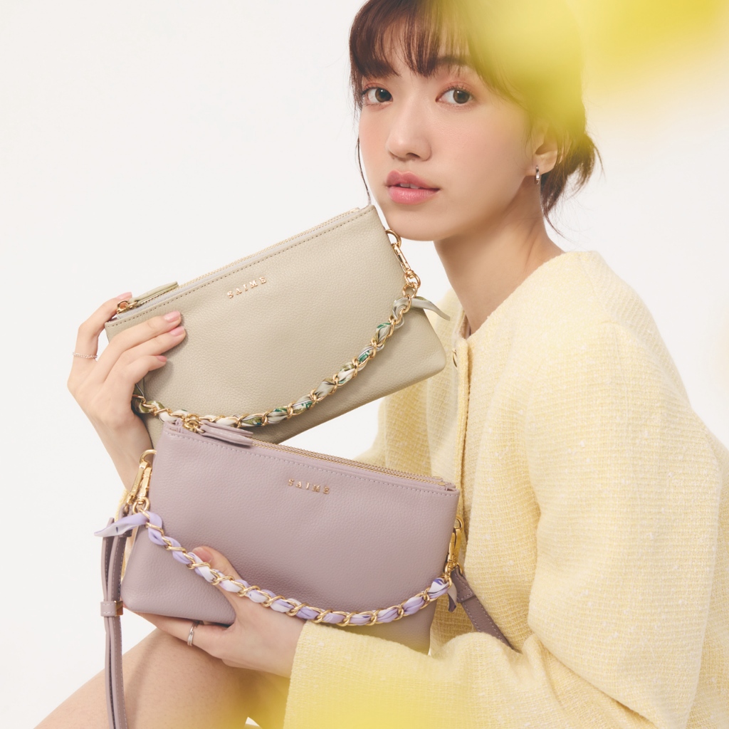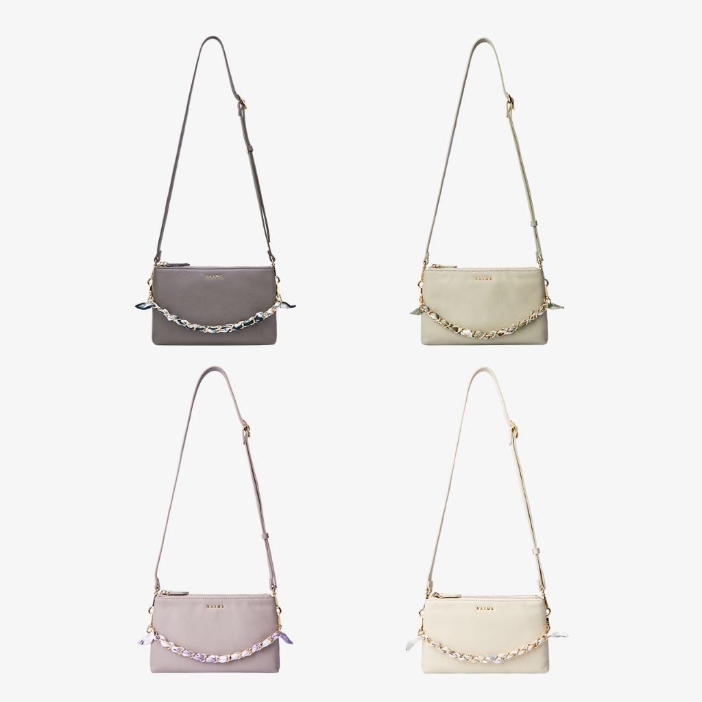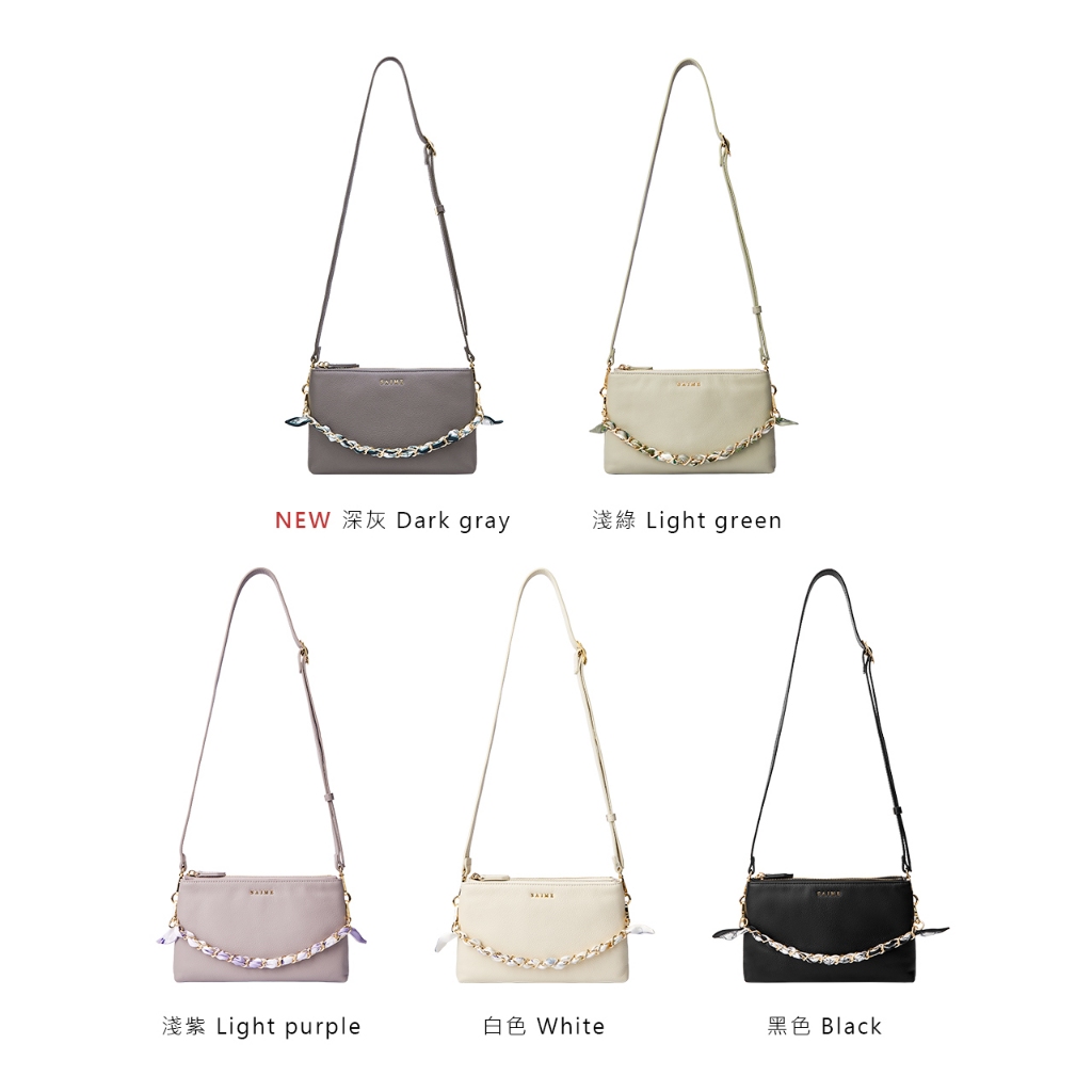 S’AIME 頭層真皮絲巾鍊條雙層方包NEW 深灰|奶白|淺紫|黑色|淺綠S’AIME 東京企劃官方旗艦店