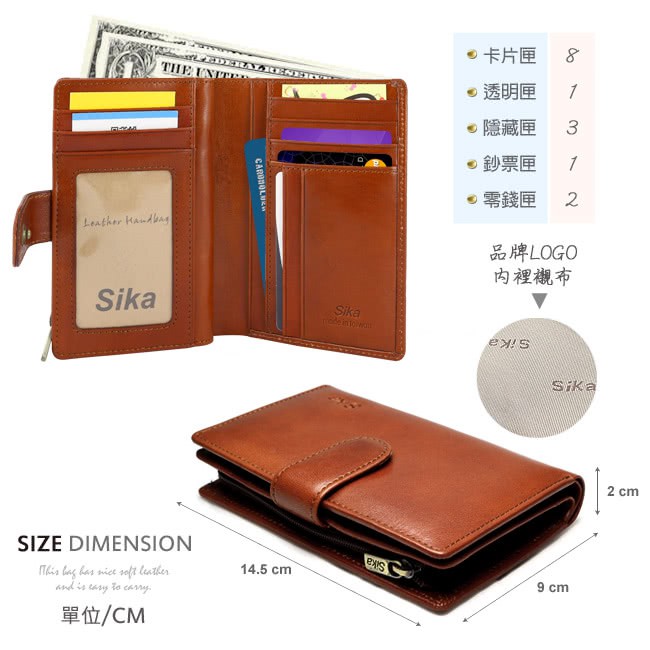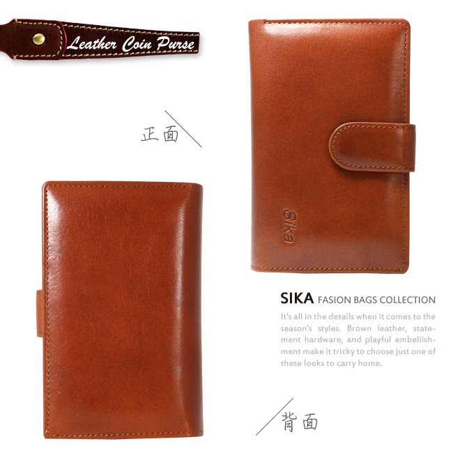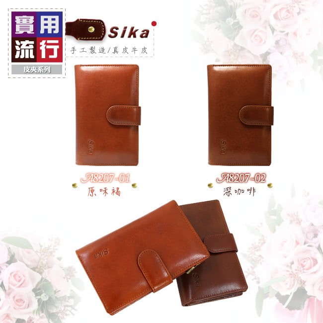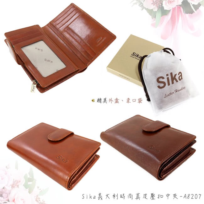 【Sika】【台製】義大利時尚真皮壓扣中夾(A8207-01原味褐) 【全館免運】原味褐|深咖啡Bifold & Trifold WalletsSika -台灣手工包(官方旗艦店)