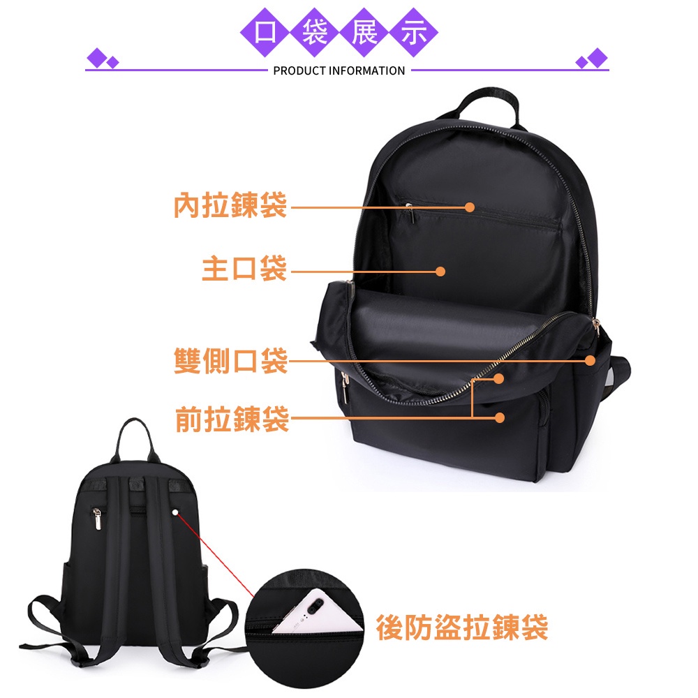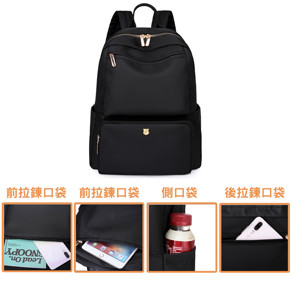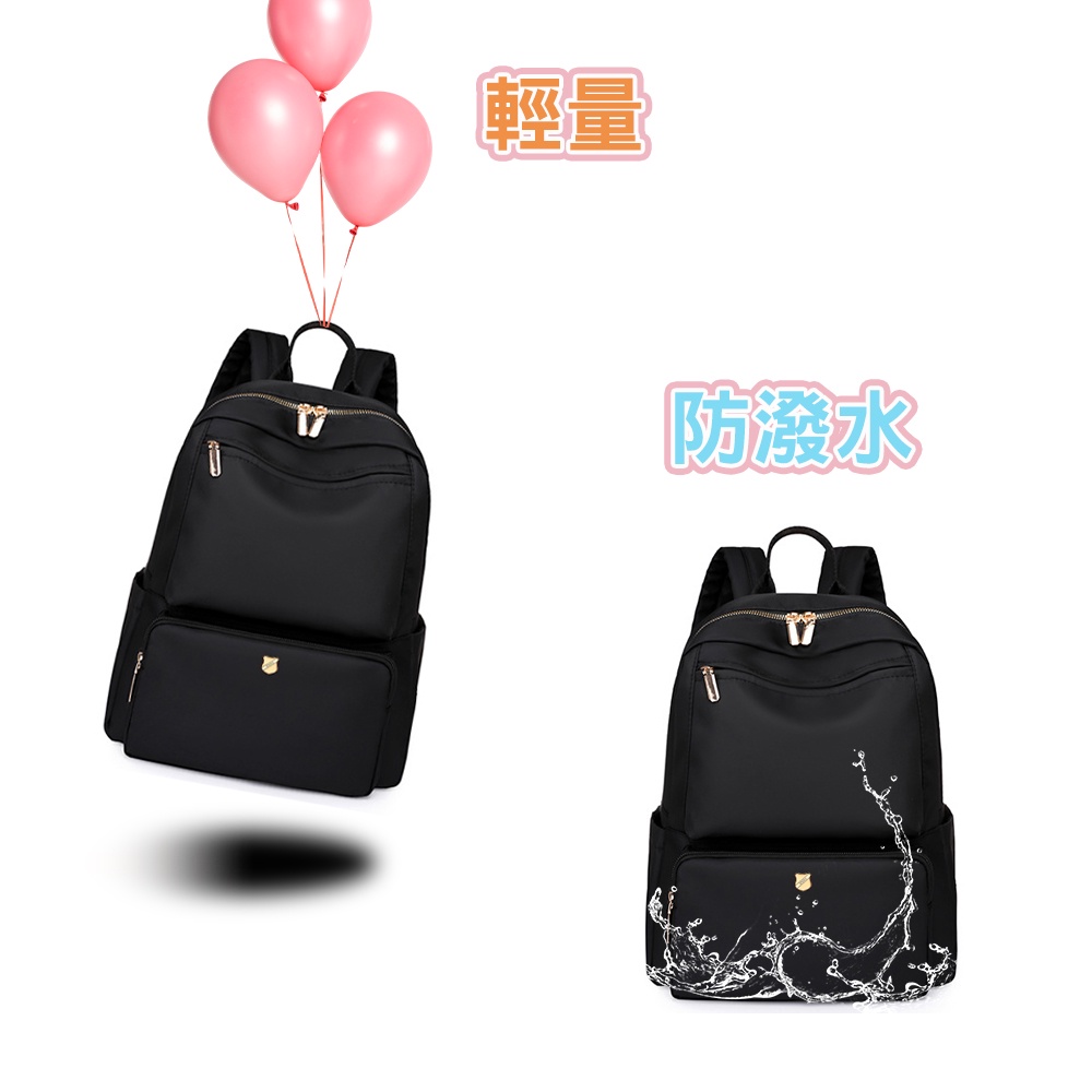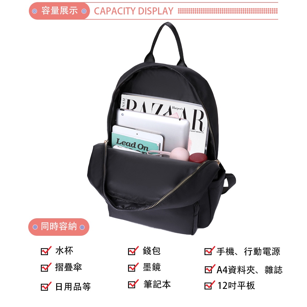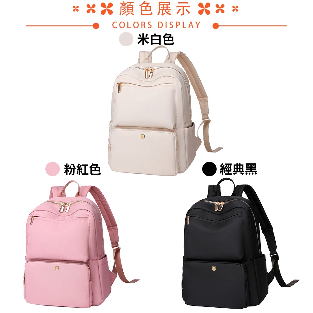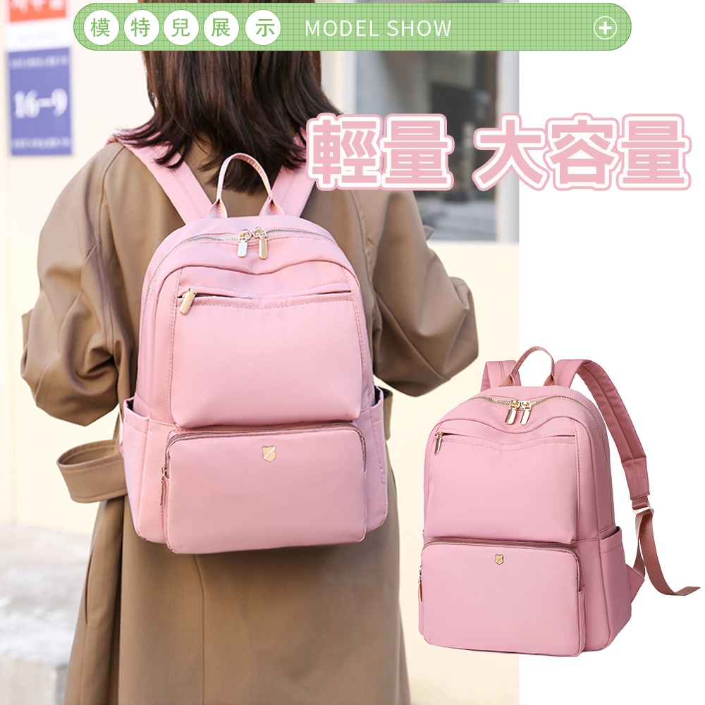 SPRING-尼龍輕量後背包大容量學生後背包旅行後背包-多色經典黑|米白色|粉紅色SPRING包包