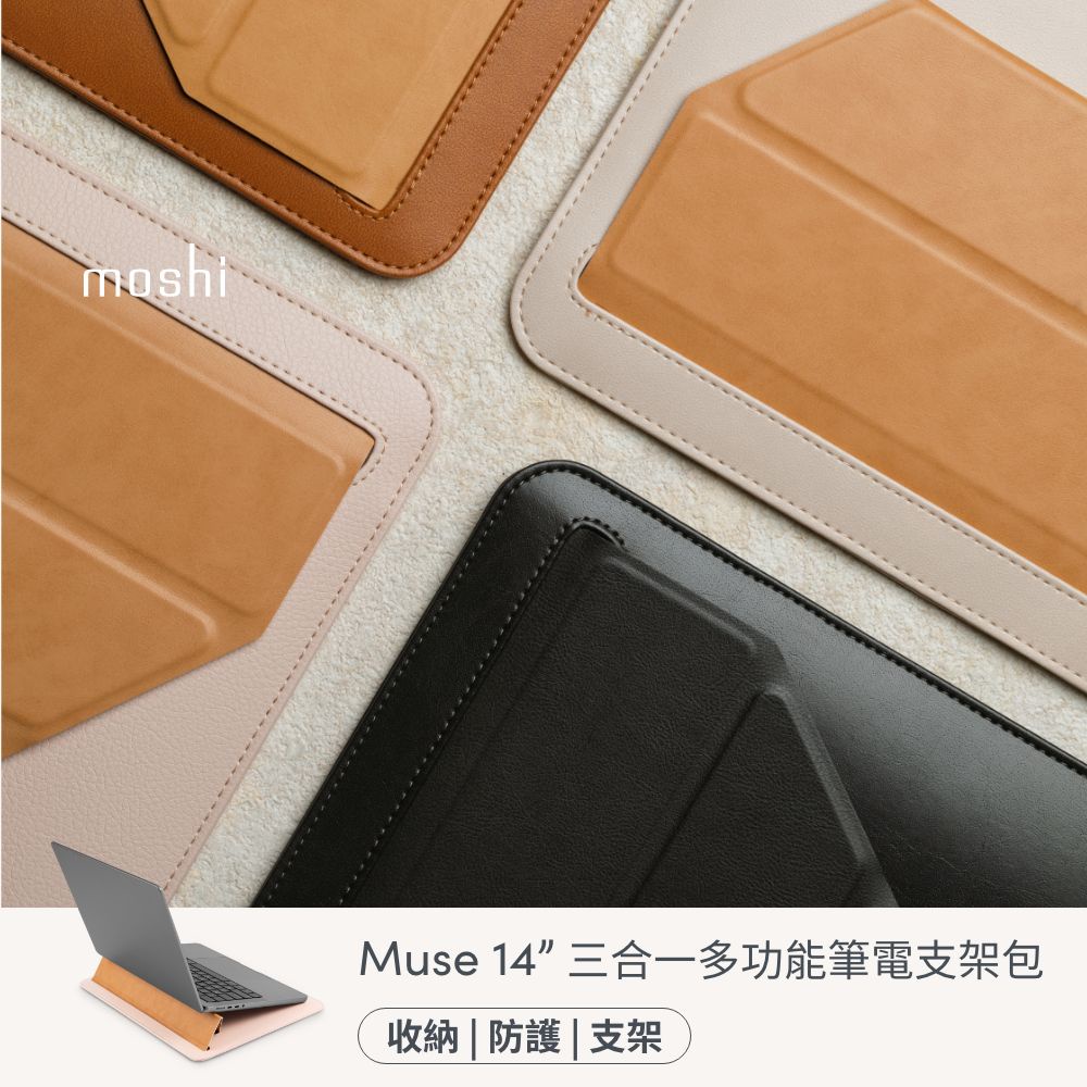 Moshi Muse 14吋 三合一多功能筆電支架包焦糖棕|貝殼白|玫瑰粉|墨黑Laptop Sleevesmoshi 官方旗艦店