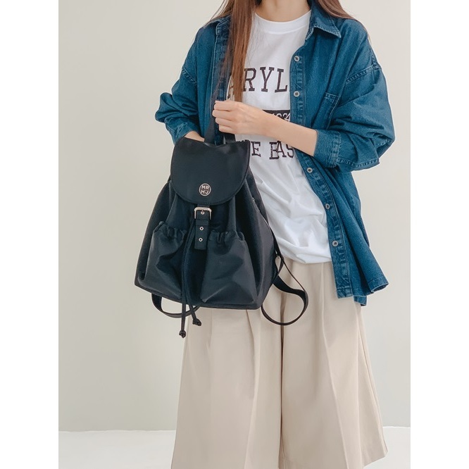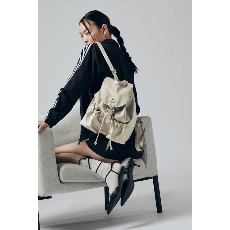 【MARHEN.J】Scarlet 尼龍抽繩後背包_韓系甜心氣質款米白色|黑色NoTag Select