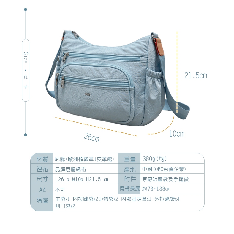 【OMC】(粉嫩藍)輕盈紙感橢圓袋多隔層側背斜背包33601【OMC】(粉嫩藍)輕盈紙感橢圓袋多隔層側背斜背包33601OMC官方旗艦館