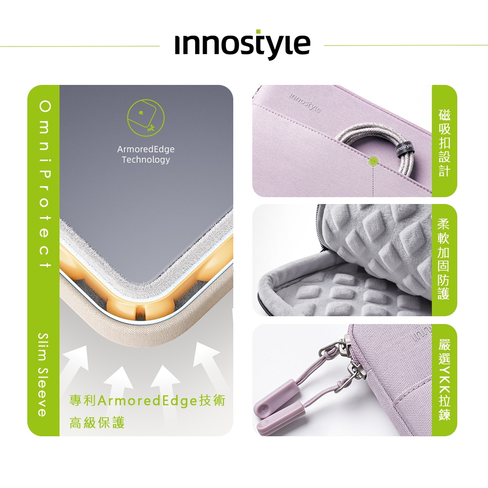 innostyle OmniProtect系列 16吋 專利緩衝 筆電包/平板包/電腦包/公事包/收納包 淡紫黑色|淺灰|午夜藍|淡紫Laptop SleevesPICKOGEN 台灣旗艦店
