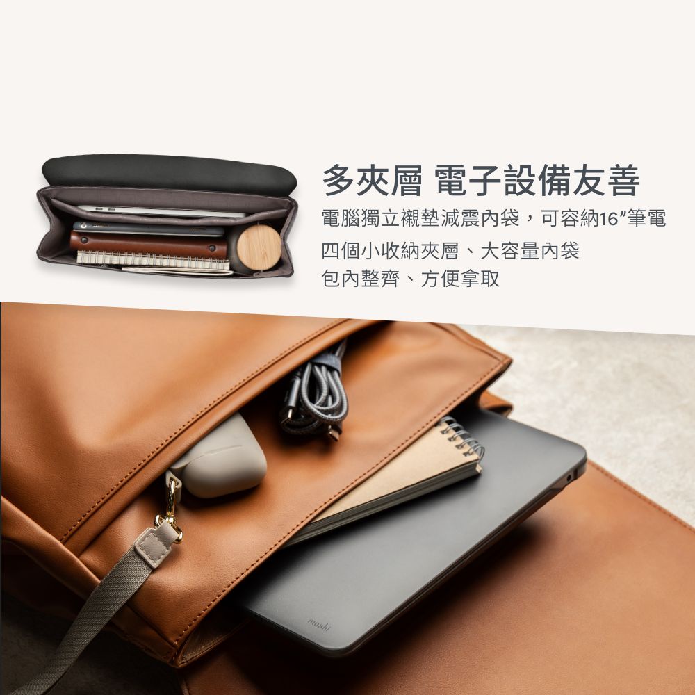 Helios Lite 時尚雙肩後背包焦糖棕|黝黑moshi 官方旗艦店
