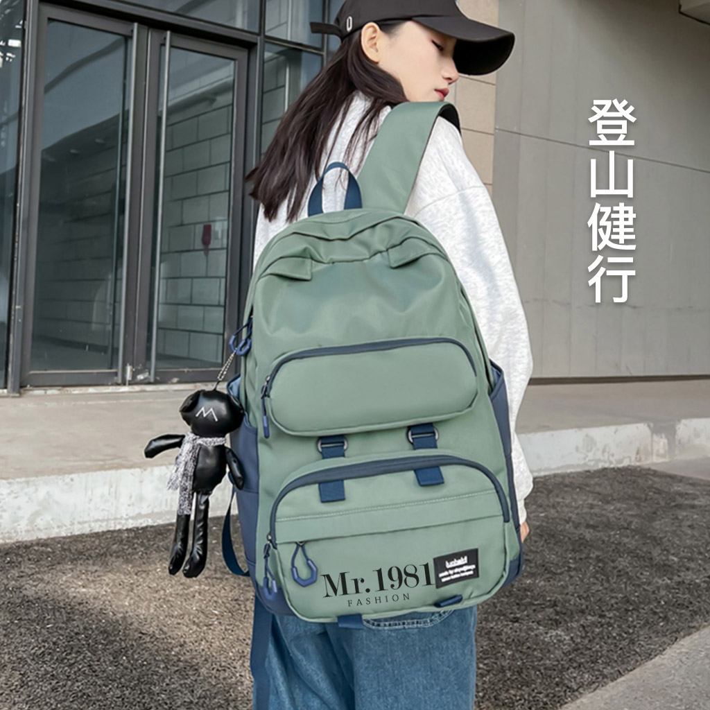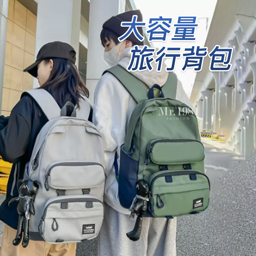 素色後背包 雙肩後背包 大後背包 大容量旅行背包 3色 登山包 後背包 情侶包 背包【台灣現貨 情侶款】黑,F|灰,F|綠,FMr.1981 Fashion潮流服飾