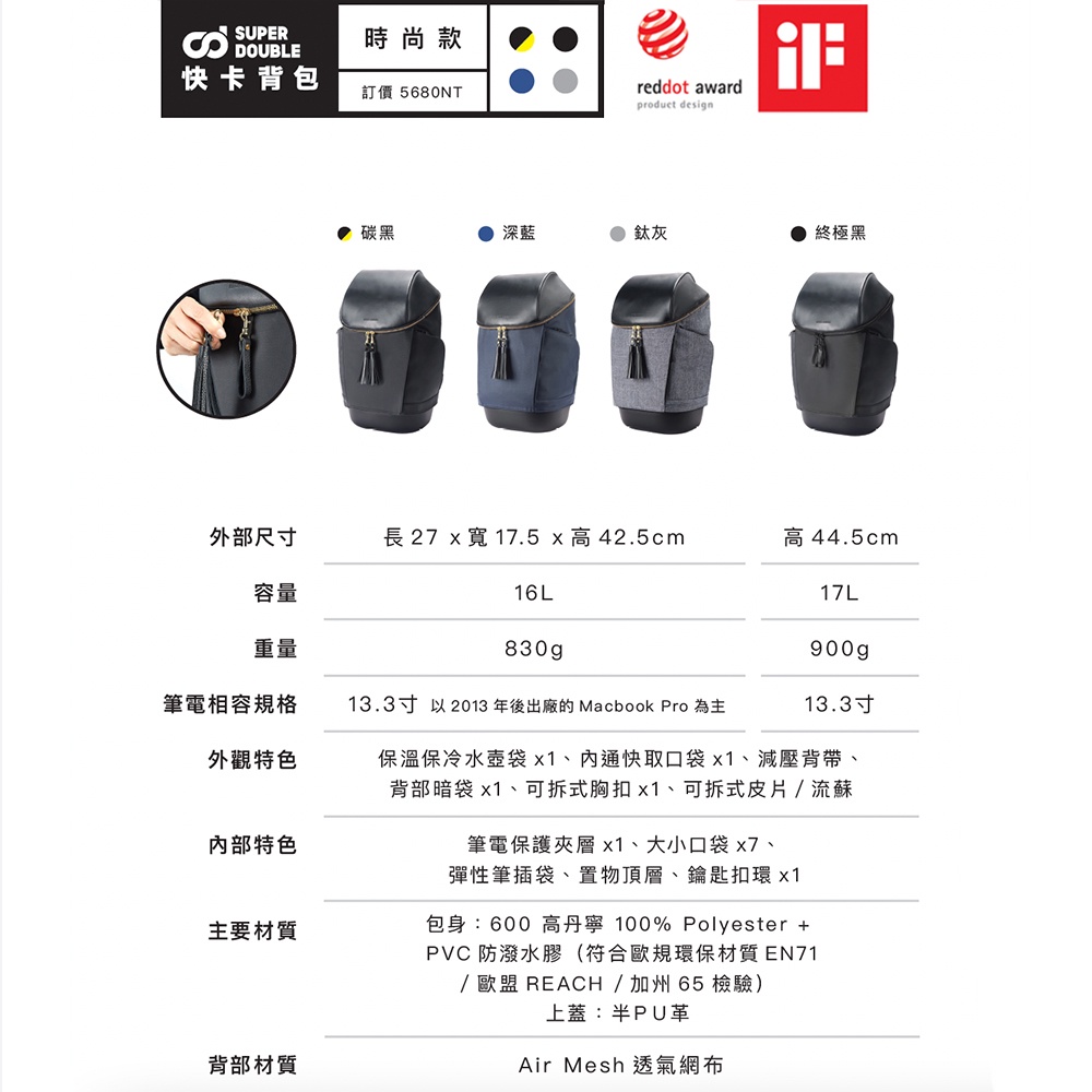 Super Double 快卡背包 瑕疵品特賣區運動款-鈦灰|運動款-碳黑|運動款-深藍|時尚款-碳黑|時尚款-鈦灰|時尚款-深藍Super Double 快卡背包