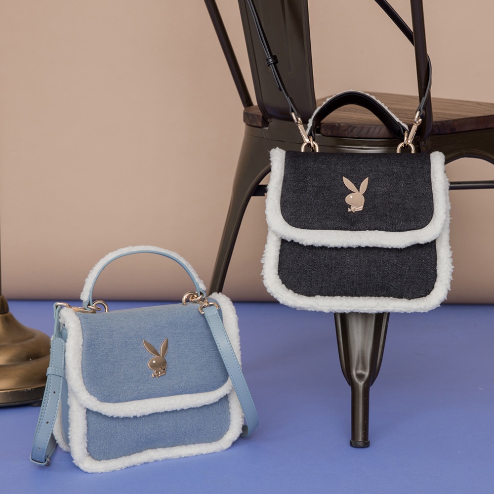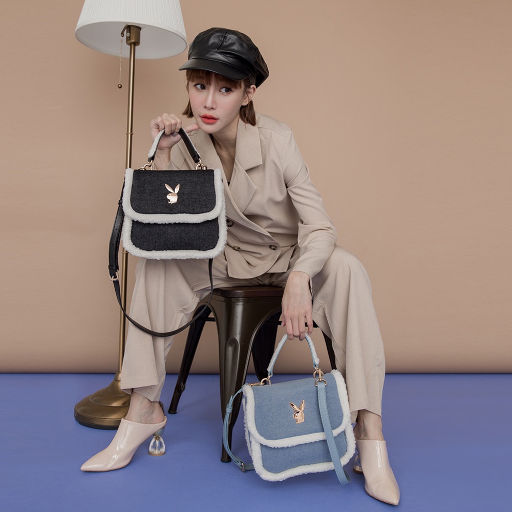 PLAYBOY – 毛絨翻蓋斜背包 Plush系列- 多色可選絨布面-灰色|絨布面-黑色|絨布面-粉色|牛仔布面-黑色|牛仔布面-藍色|印刷PVC-仿豹紋PLAYBOY包包 官方旗艦館