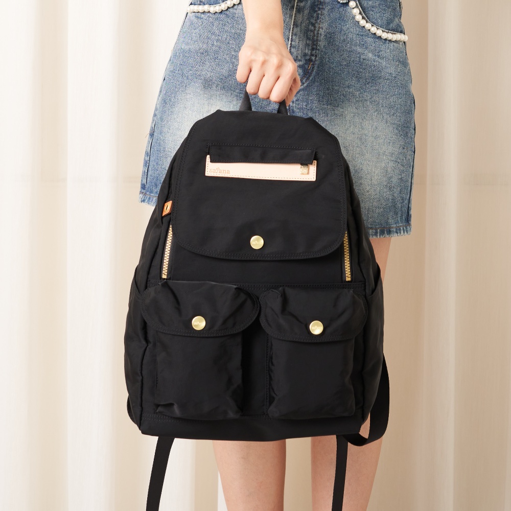 【satana】Soldier 多功能拉鍊後背包-亮黑色 (SOS1465-711)亮黑色satana 官方旗艦店