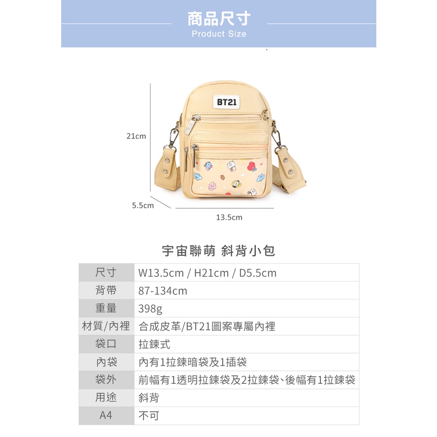 【PG美人網】 斜背小包 BT21 宇宙聯萌 R067藍色|粉紅|米黃PG美人網官方唯一旗艦店