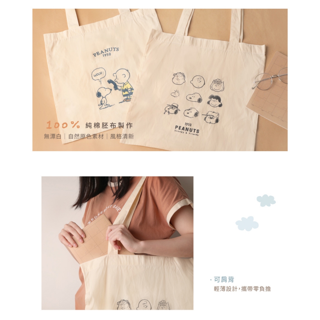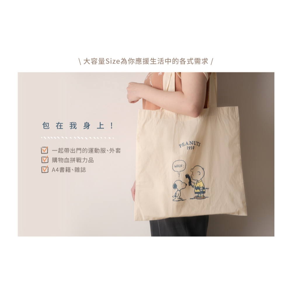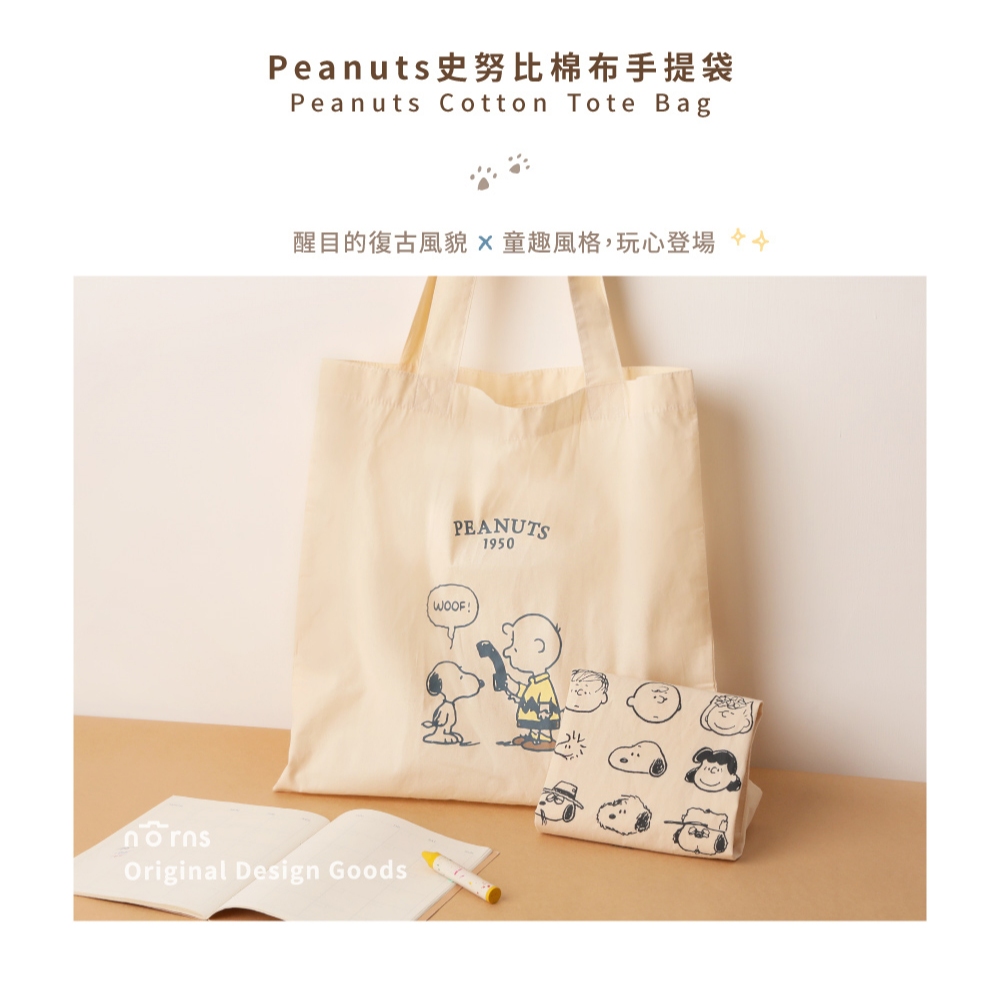 Peanuts史努比棉布手提袋-Norns Snoopy 原色手提袋 側背包 環保購物袋 Eco Bag 購物袋 手提袋電話|朋友Norns