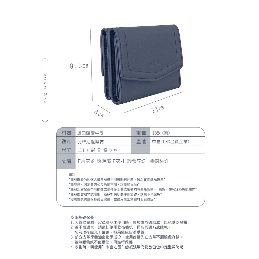 【OMC】限時特賣-納帕9卡1照信封式雙面收納牛皮短夾4165(10色任選)星辰藍|黑色|棕色|深灰|可可色|紅色|奶茶色|貝殼粉|灰藍|深酒紅Bifold & Trifold WalletsOMC官方旗艦館