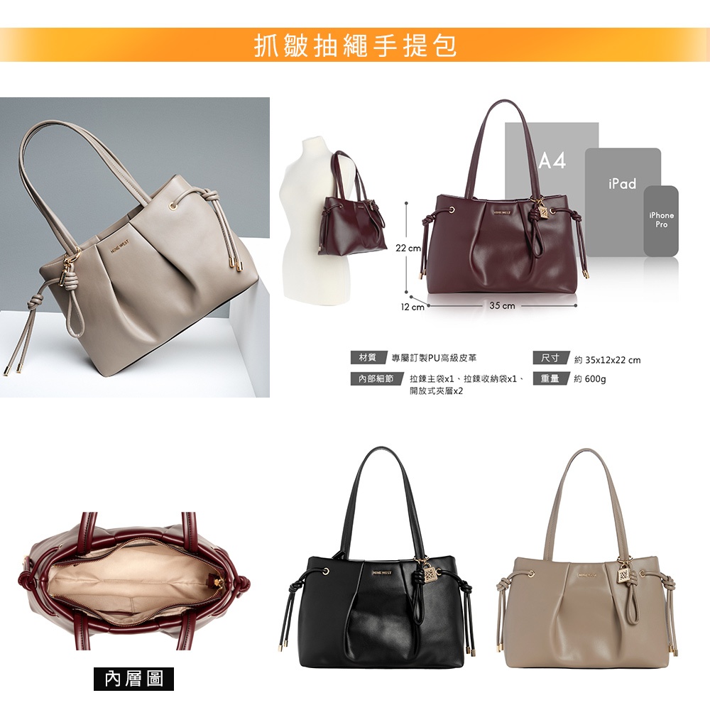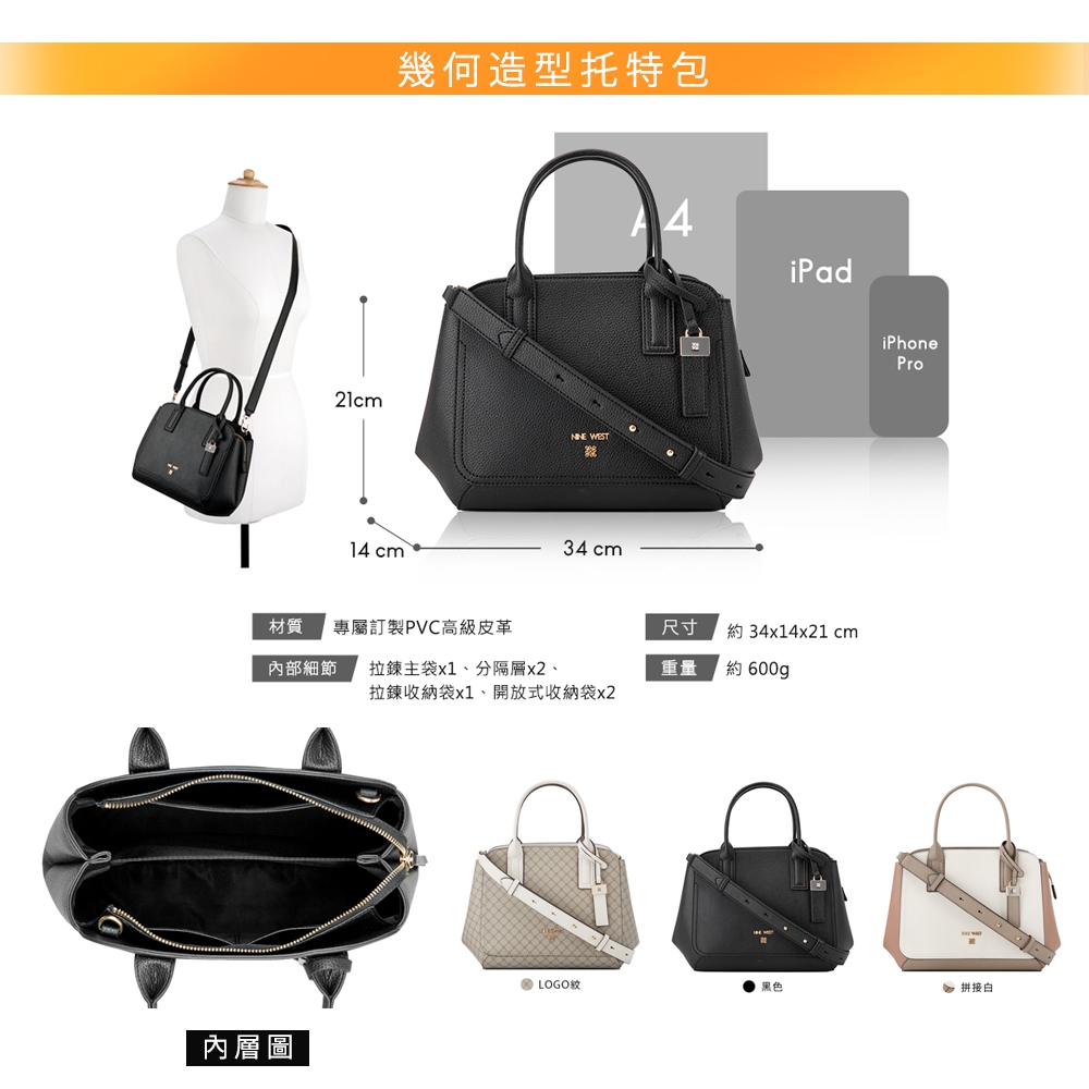 【NINE WEST】情人節禮物首選 美國輕奢品牌 簡約素色包 / 印花大容量托特包 / 手提包 / 肩背包 (多款)幾何造型托特包-拼接白|素色托特/斜背包-杏色|幾何縫衍托特包-奶油白|抓皺抽繩手提包-黑色|素色托特/斜背包-黑色NINE WEST│官方旗艦店