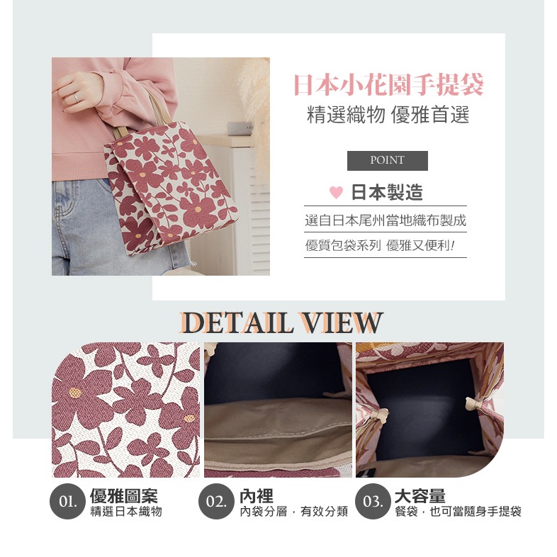 日本製-尾州織 栽出小花園便當袋手提袋-粉包Paidal官方旗艦店