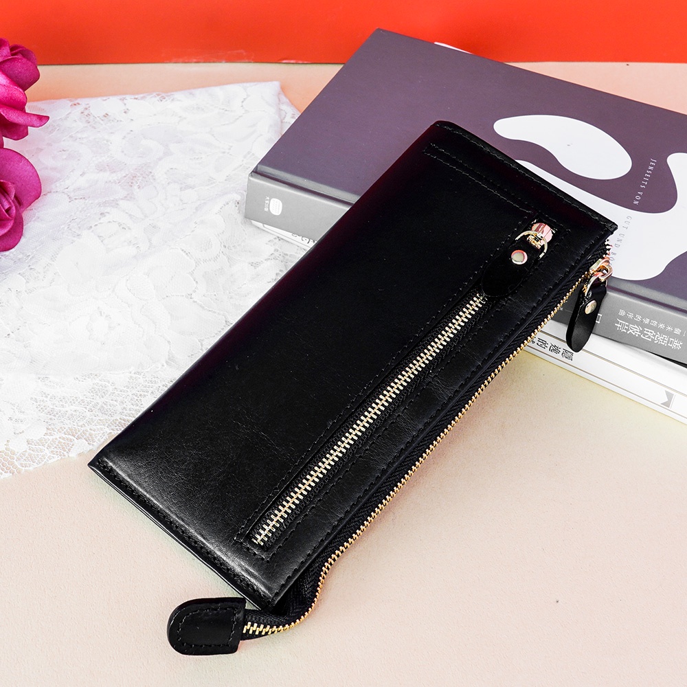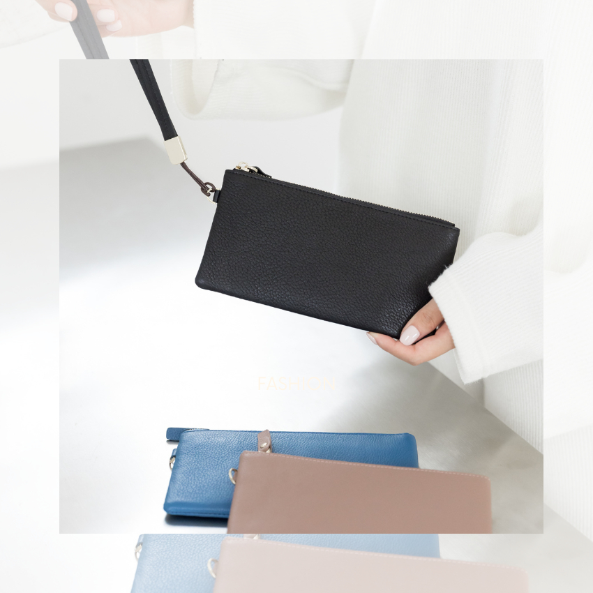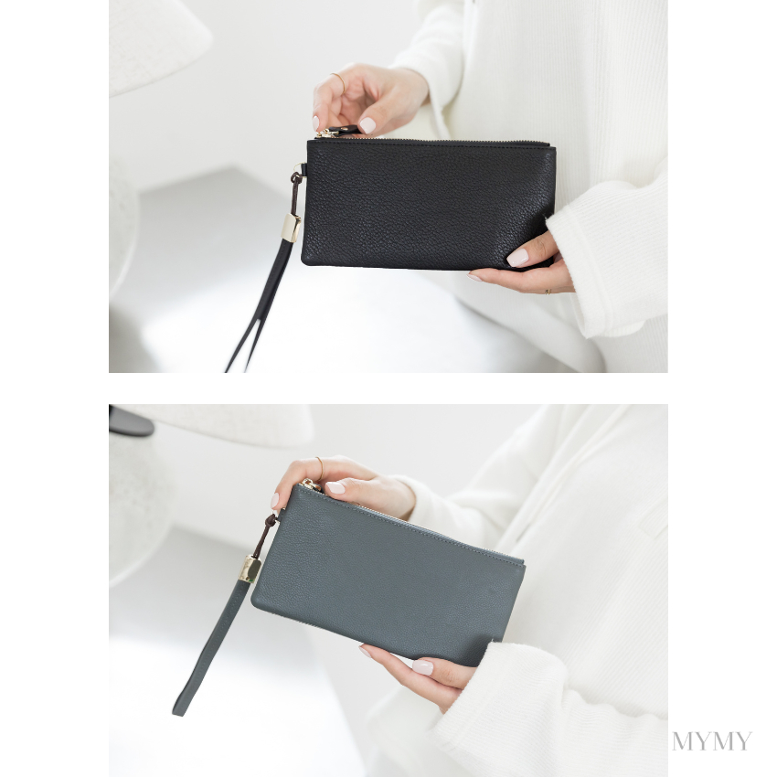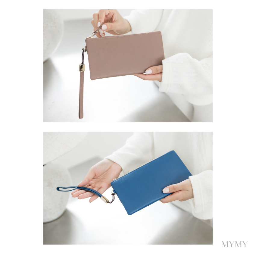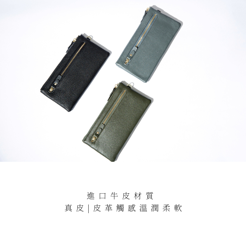 【MYMY】優雅細緻 單層牛皮拉鍊長夾 (手拎包/零錢袋/多夾層/真皮/多色)灰藍|橄欖綠|藕粉|靛藍|經典黑Long WalletsMYMY For Bag
