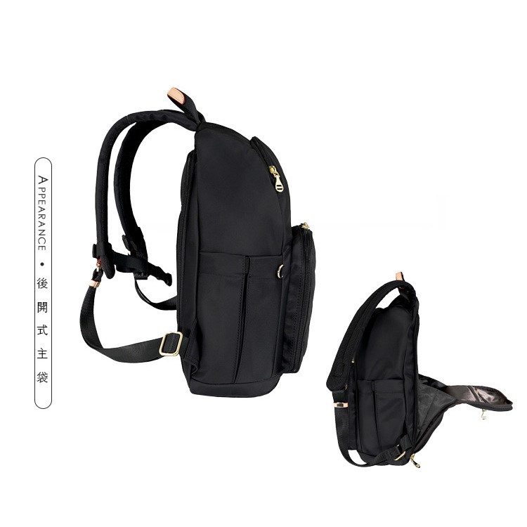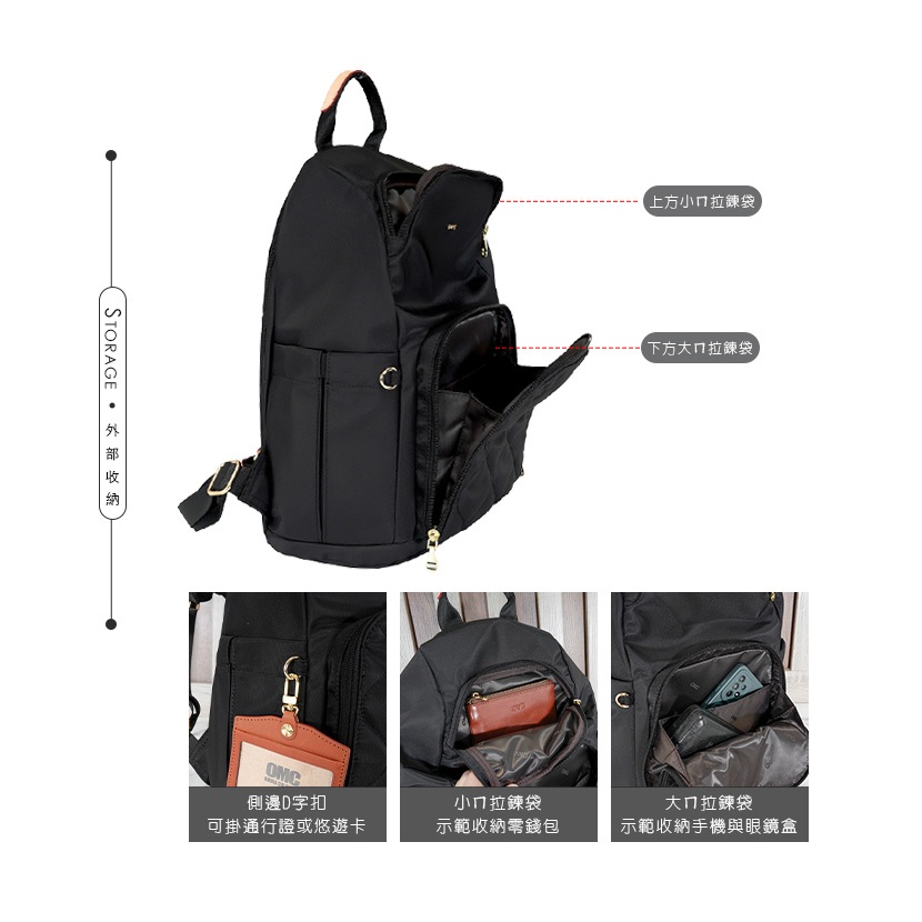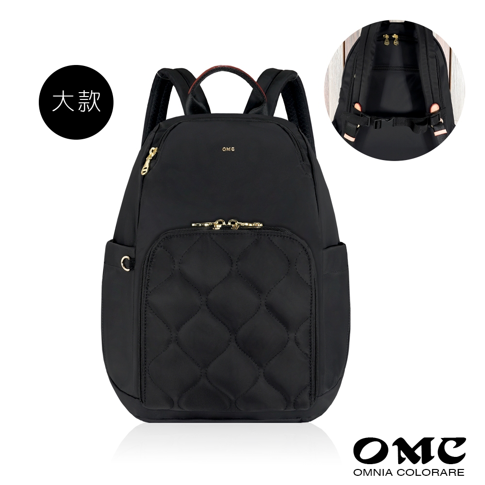 【OMC】口袋款後開式防盜後背包(大款)23343(黑色)無胸扣|附胸扣OMC官方旗艦館