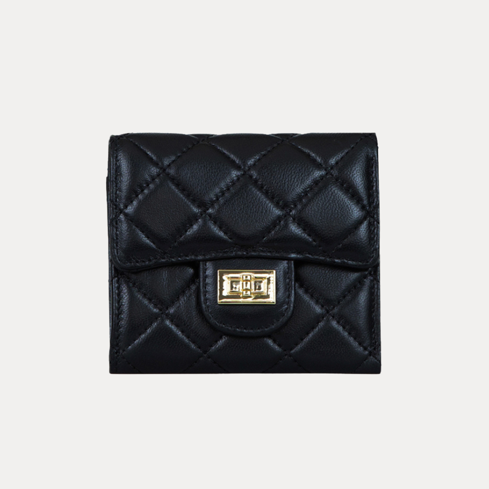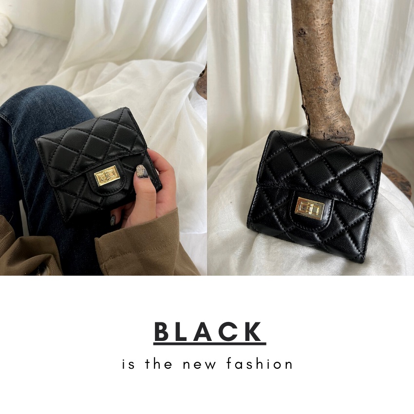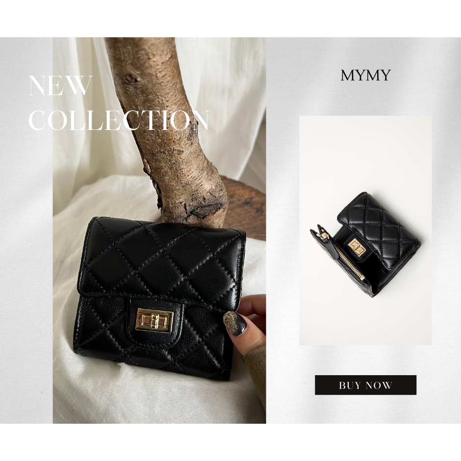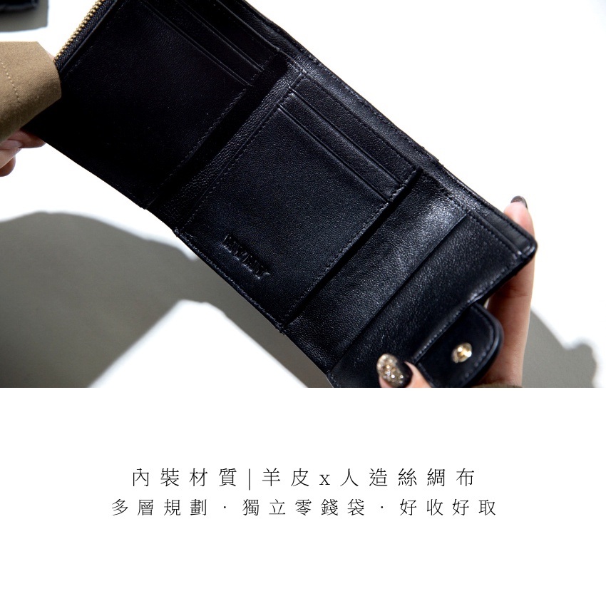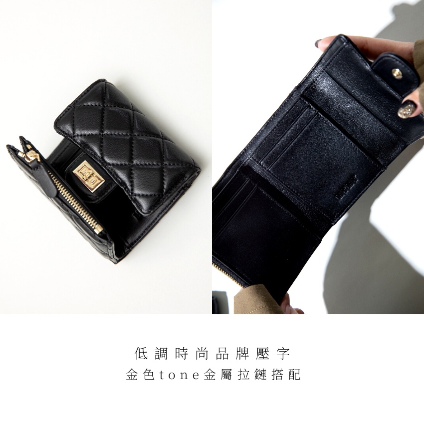 【MYMY】優雅細緻 菱格短夾 (羊皮/短夾/多夾層/零錢袋/真皮)經典黑Bifold & Trifold WalletsMYMY For Bag