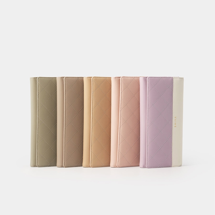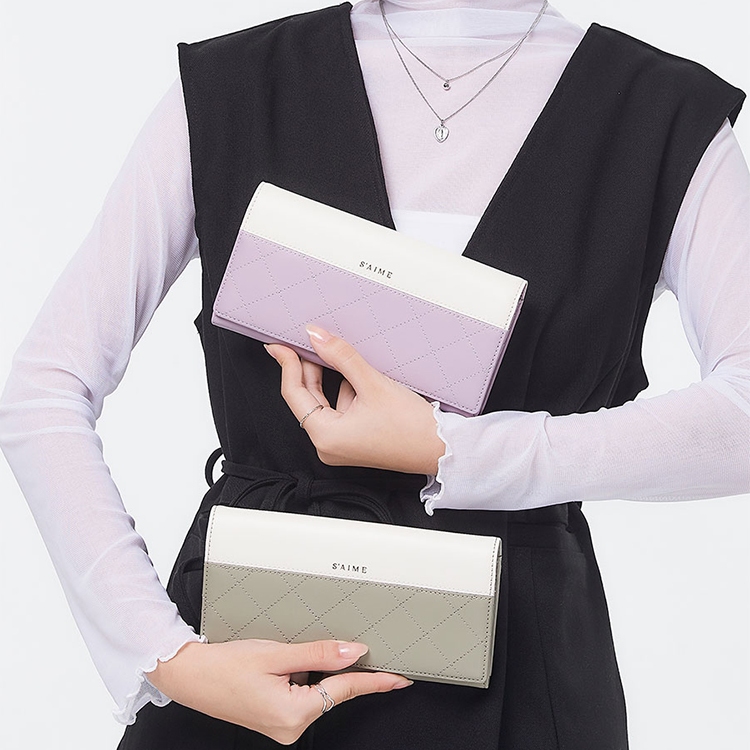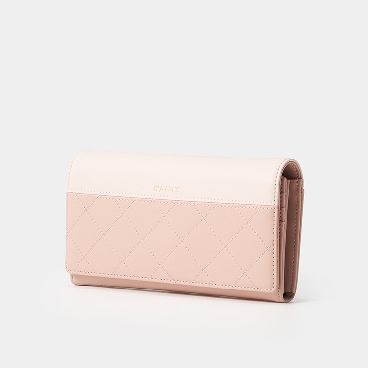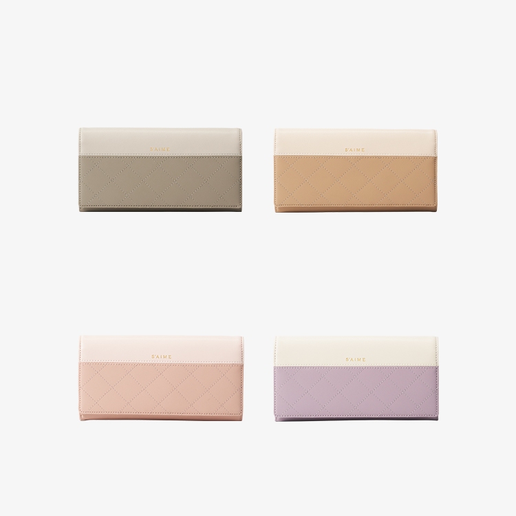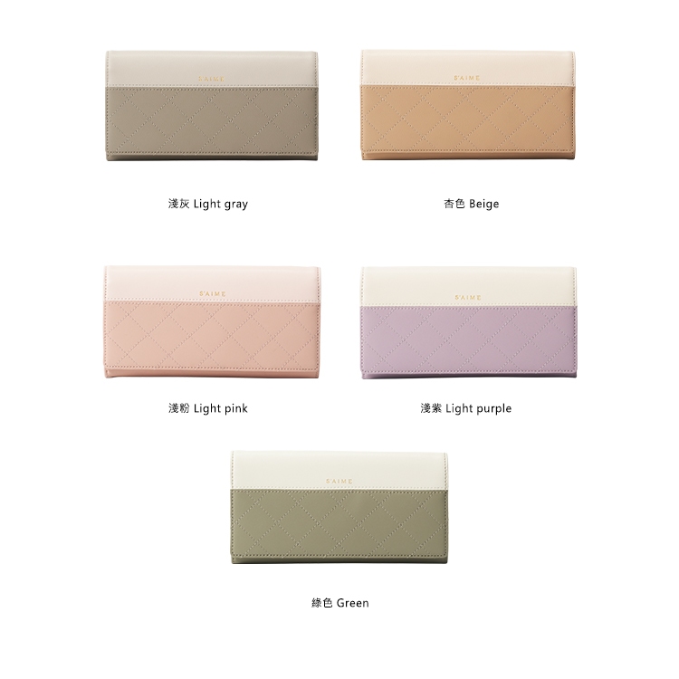 S’AIME 真皮RFID菱格撞色長夾杏色|淺粉紅|淺灰|綠色|淺紫Long WalletsS’AIME 東京企劃官方旗艦店