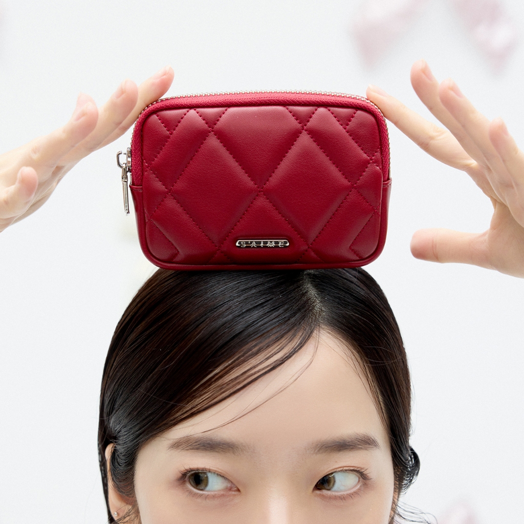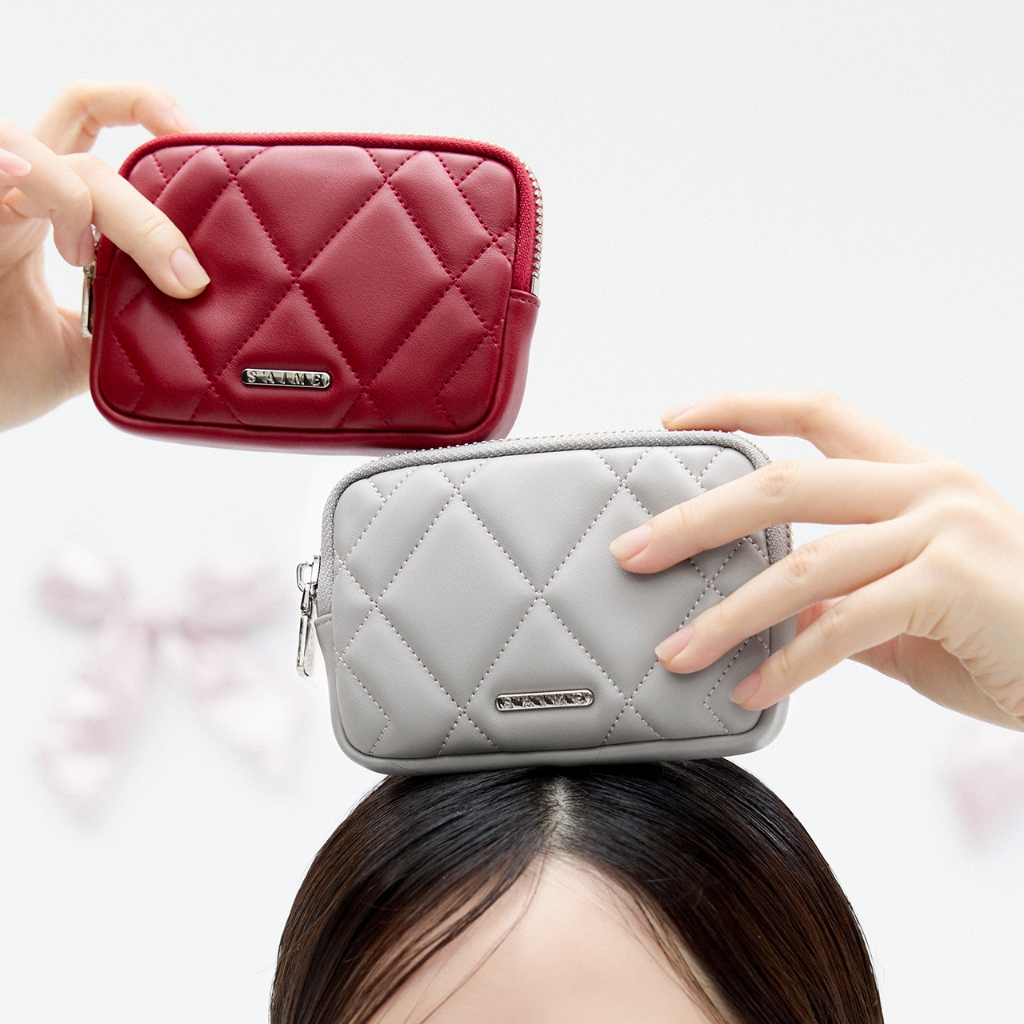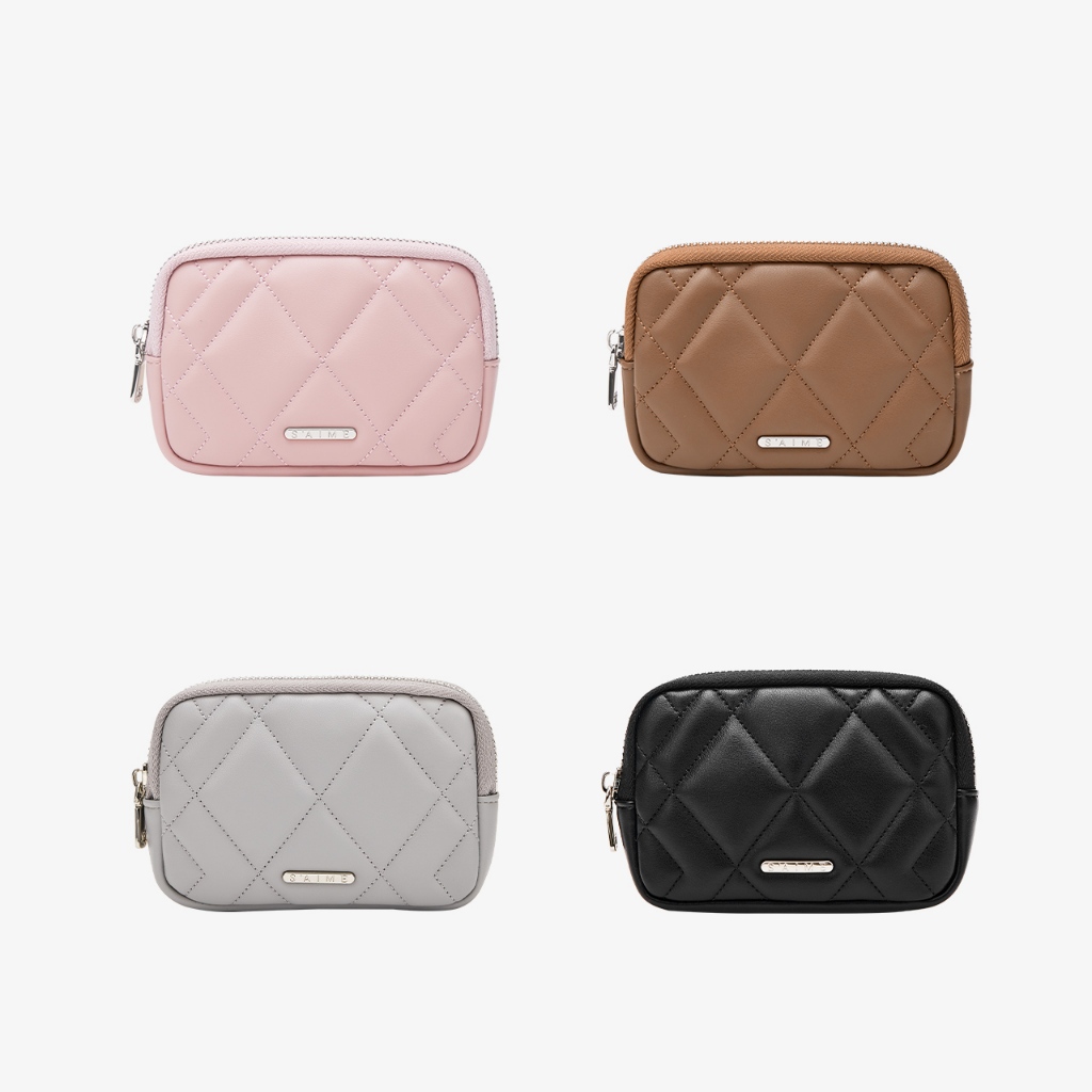 S’AIME 菱格絎縫方型零錢包灰色|黑色|酒紅|白色|NEW 粉色|NEW 咖啡Coin Holders & PursesS’AIME 東京企劃官方旗艦店