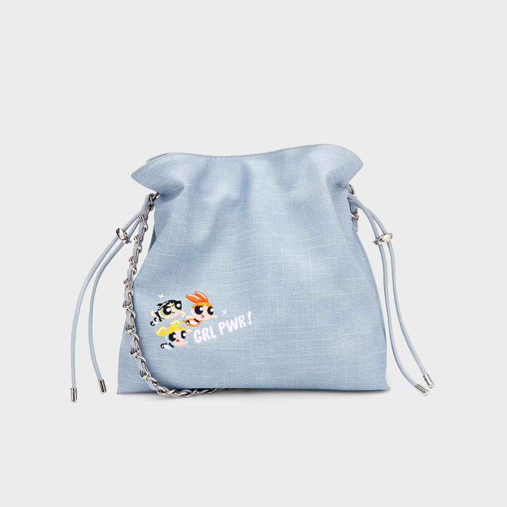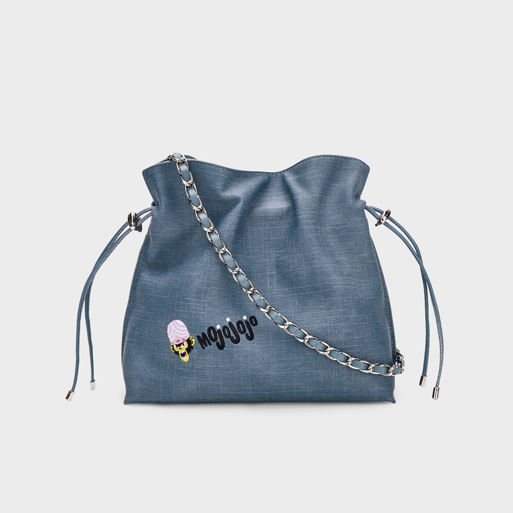 S’AIME 飛天小女警牛仔2WAY束口雙面流浪包 (S)藍色|深藍S’AIME 東京企劃官方旗艦店