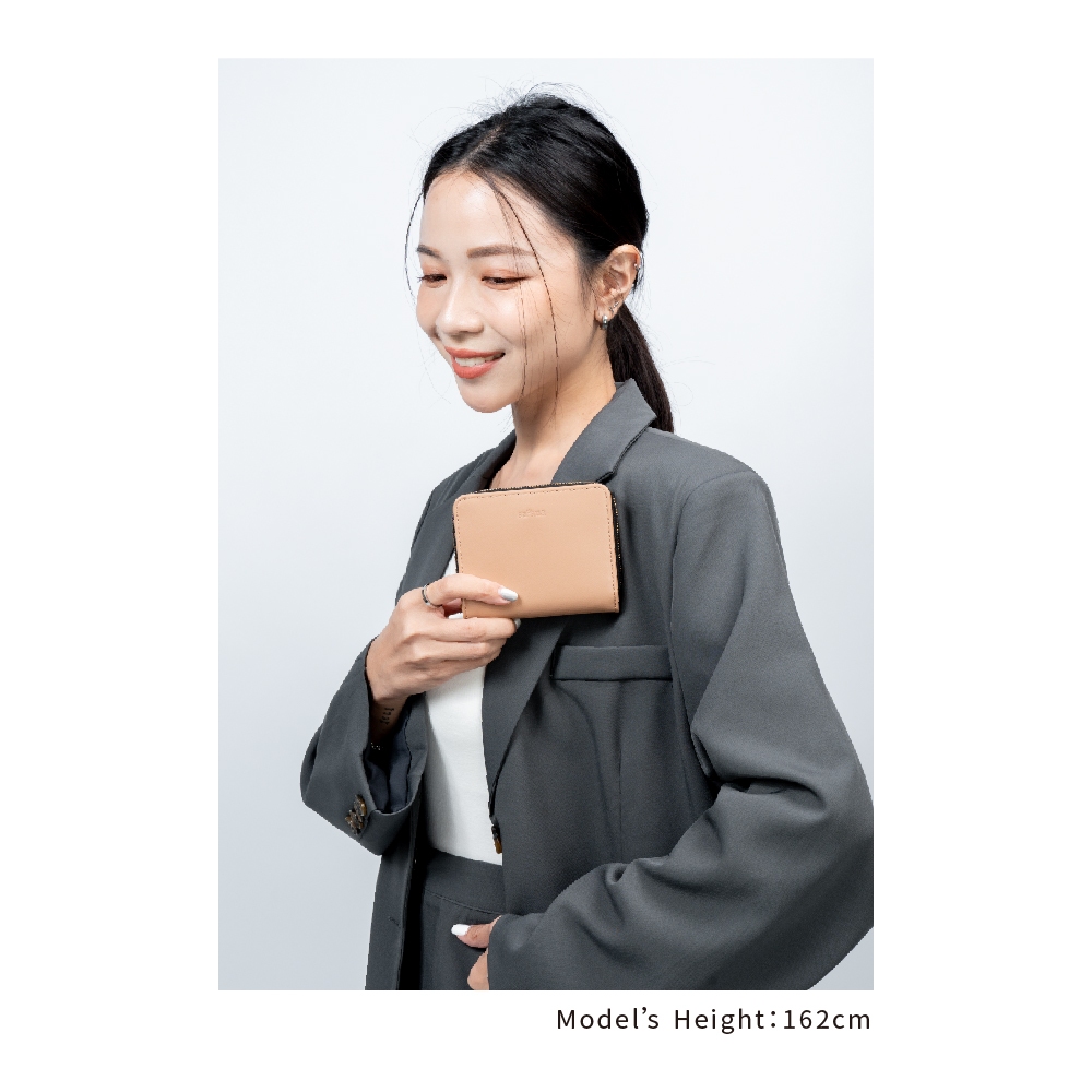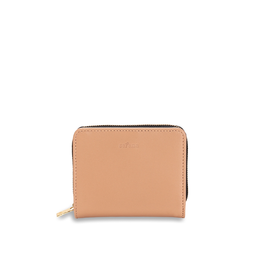 【satana】Leather 簡約拉鍊短夾-裸茶色 (SLG0660-422)裸茶色Bifold & Trifold Walletssatana 官方旗艦店